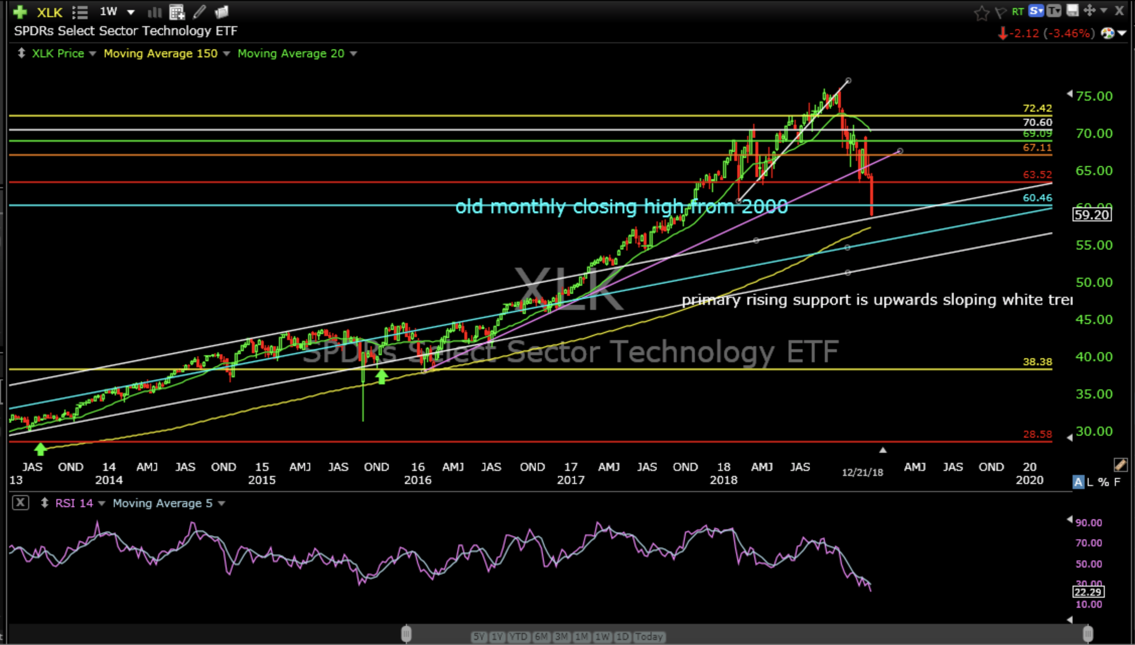 QQQ has no decent support that I can see now that we blew through the earlier lows of 2018. The only way this can be turned into a positive is if price closes the month above 156.10, the weekly closing low of 2018 from February 2018. This is highly unlikely.