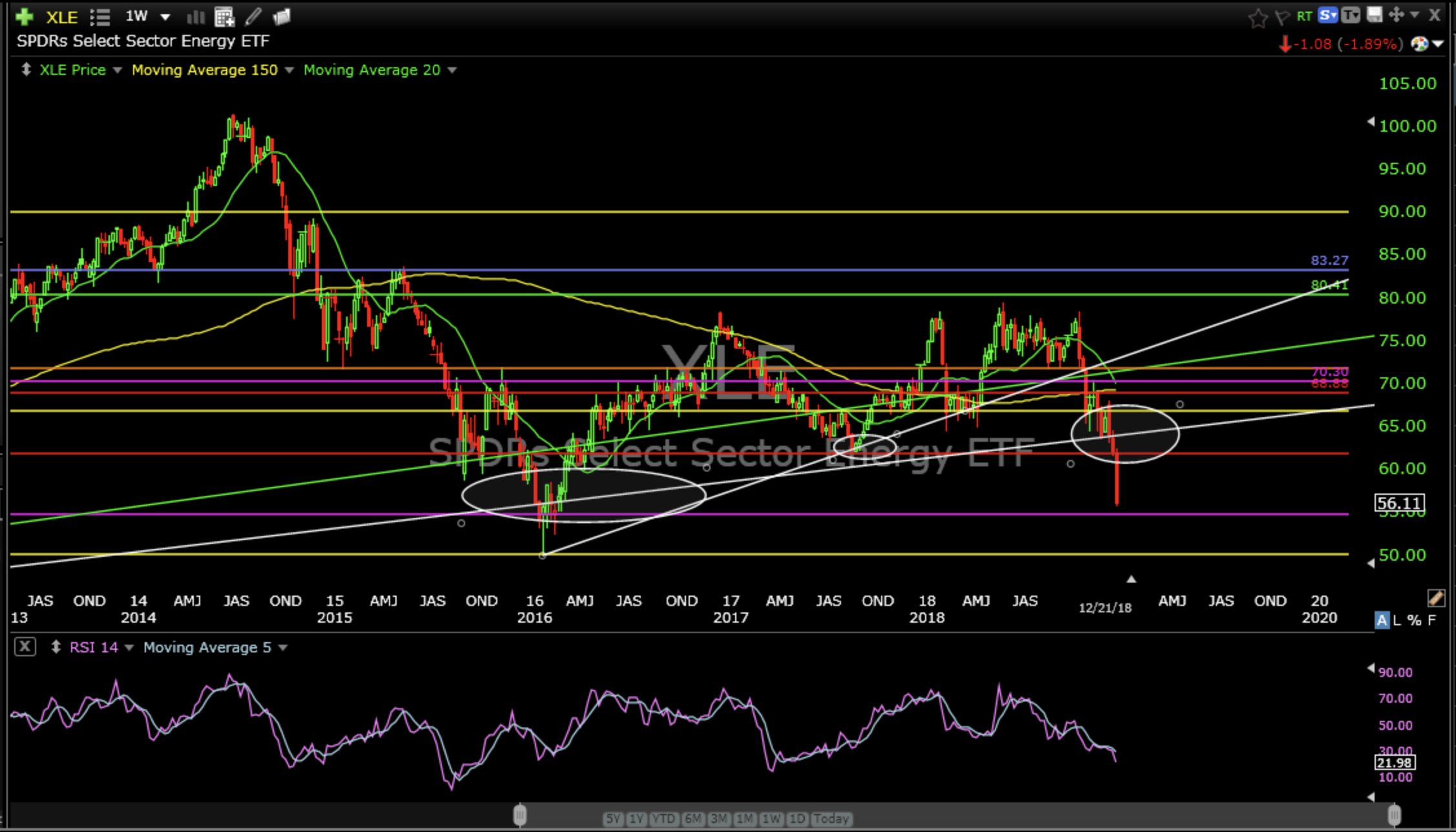 The Energy Sector ETF (XLE) is breaking down hard and fast violating multiple support levels. I could easily see another 10% fall from Friday’s close.