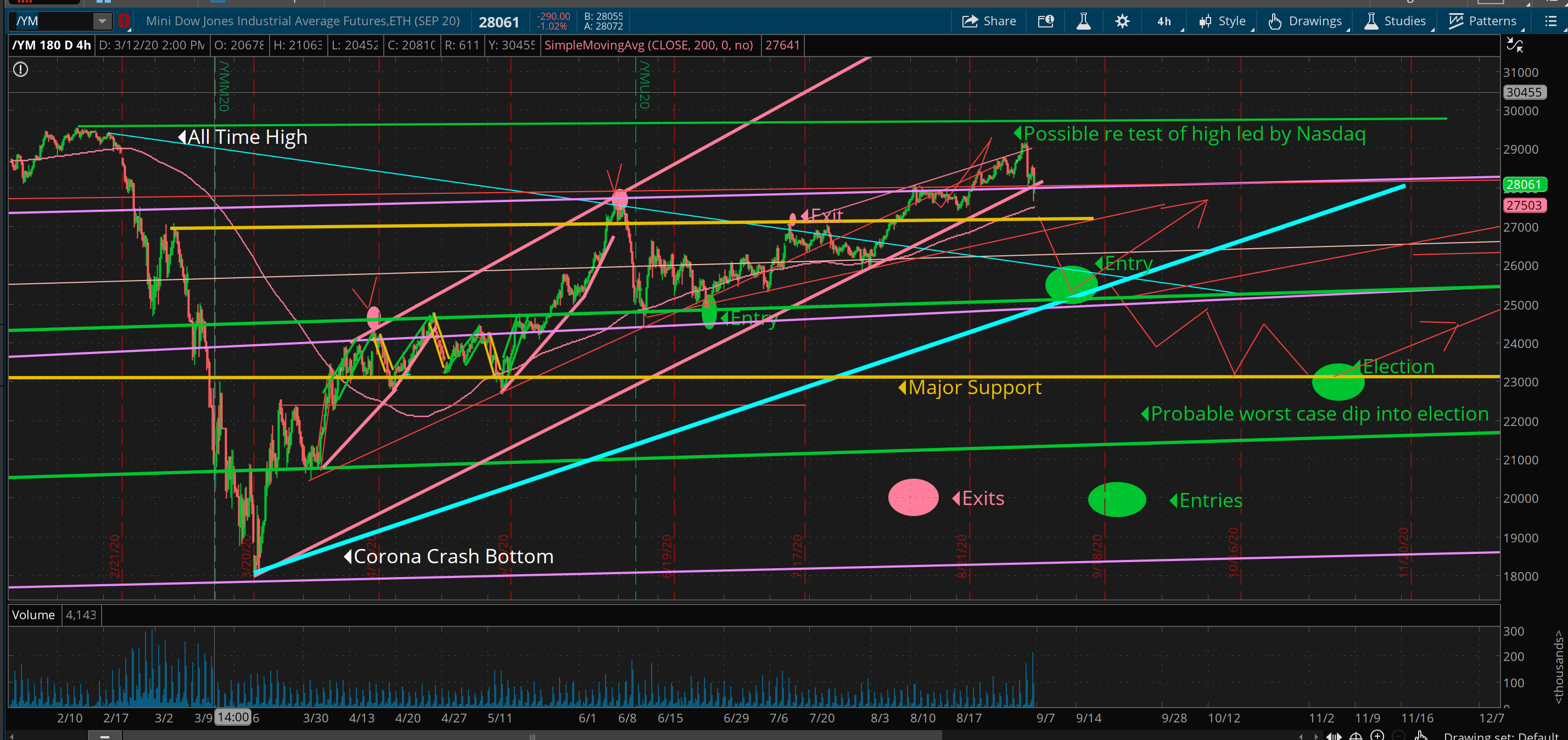 As you know I have been trimming positions, raising cash and reducing risk for the past month in anticipation of a likely secondary collapse into the election. The current reversal, which might be the start of the move down, began on Thursday, almost exactly when and where I had forecast weeks ago. Weeks ago, I projected Nasdaq would likely fill the gap up to 12,000 where a reversal was likely to occur. You can see my Exit forecast at this level highlighted in every weekly report I have published for the past five or six weeks.