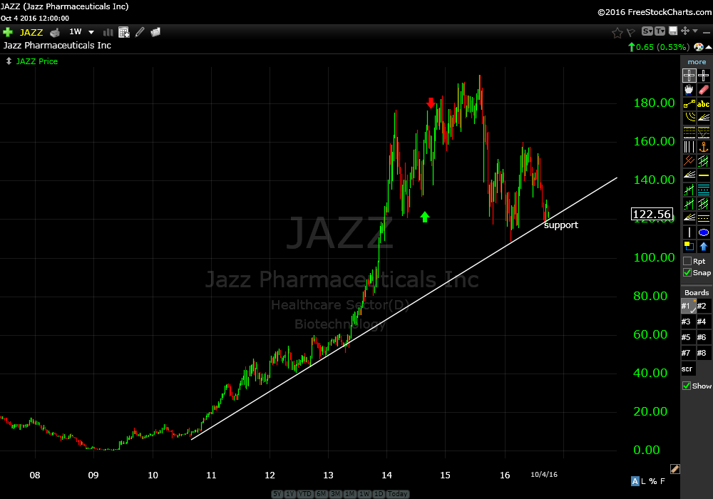 You can see the correction from late 2015; about 38%. Price is re-tagging support after bouncing mid 2016. Risk is below the trend line support. Looks like a good risk/reward opportunity.