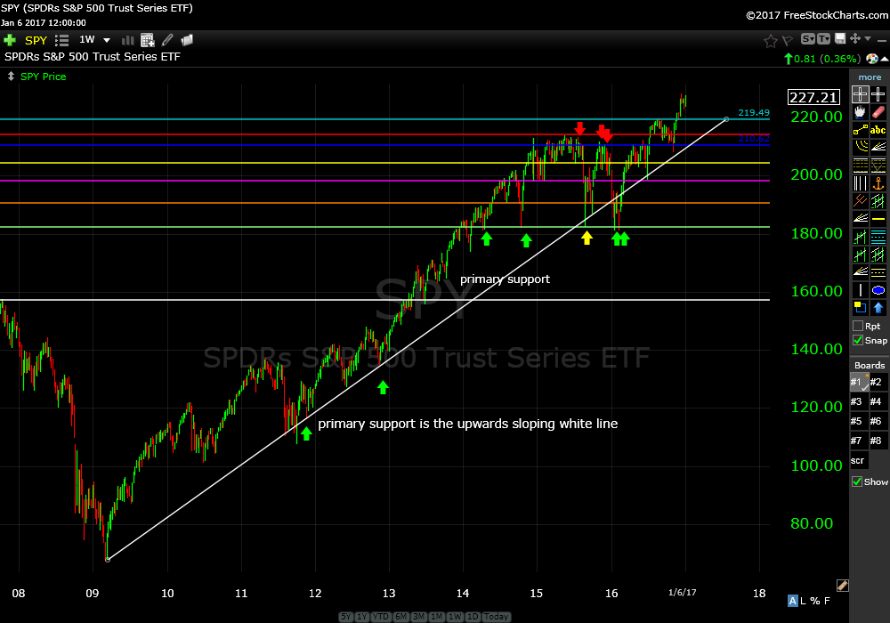 Pullbacks into SPY primary trend line support should be bought until this rising support level is violated.