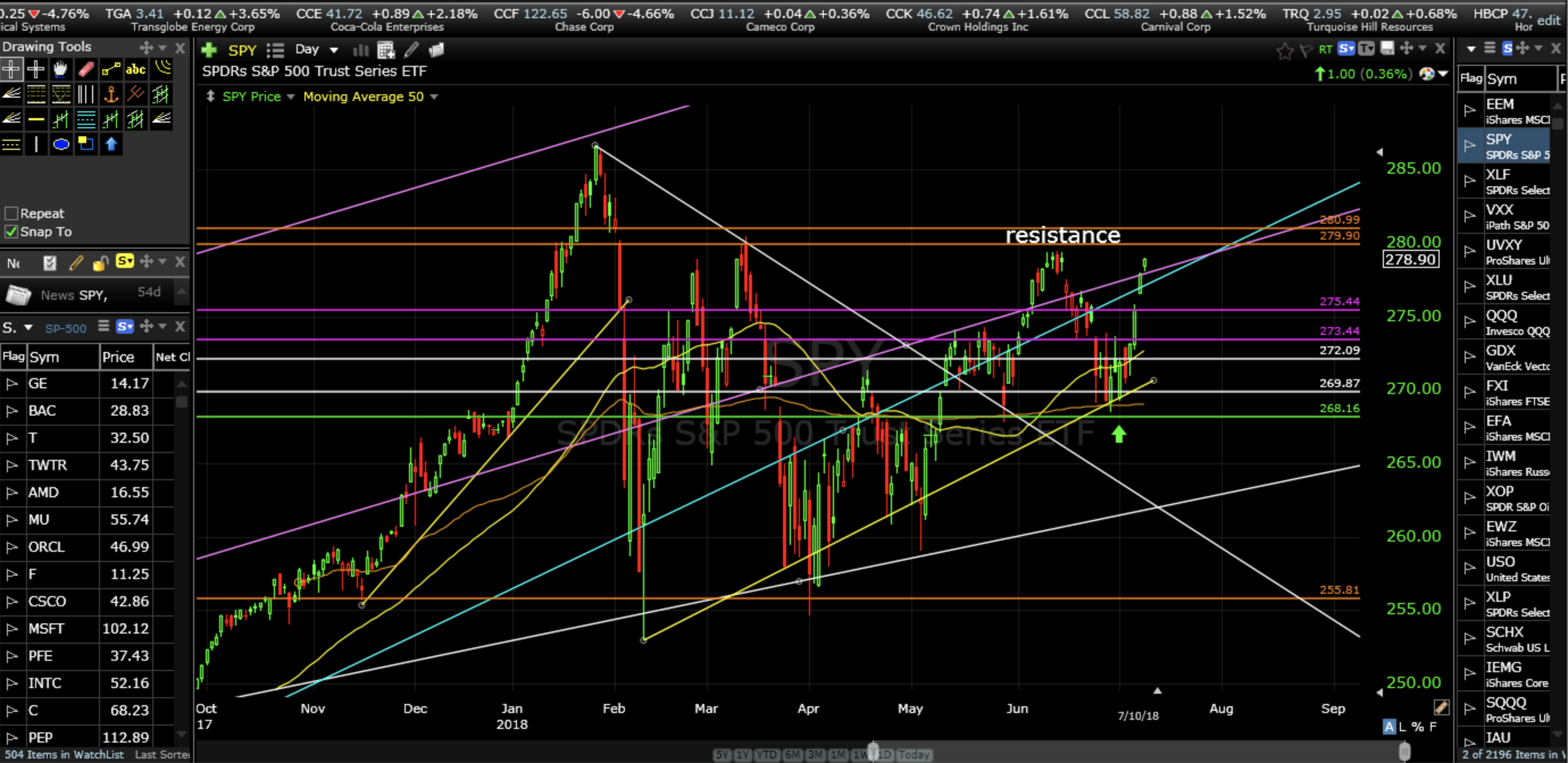 The rest of the week will be very interesting as price gets up in to resistance where the sellers and short sellers live. This price zone is 280-281.