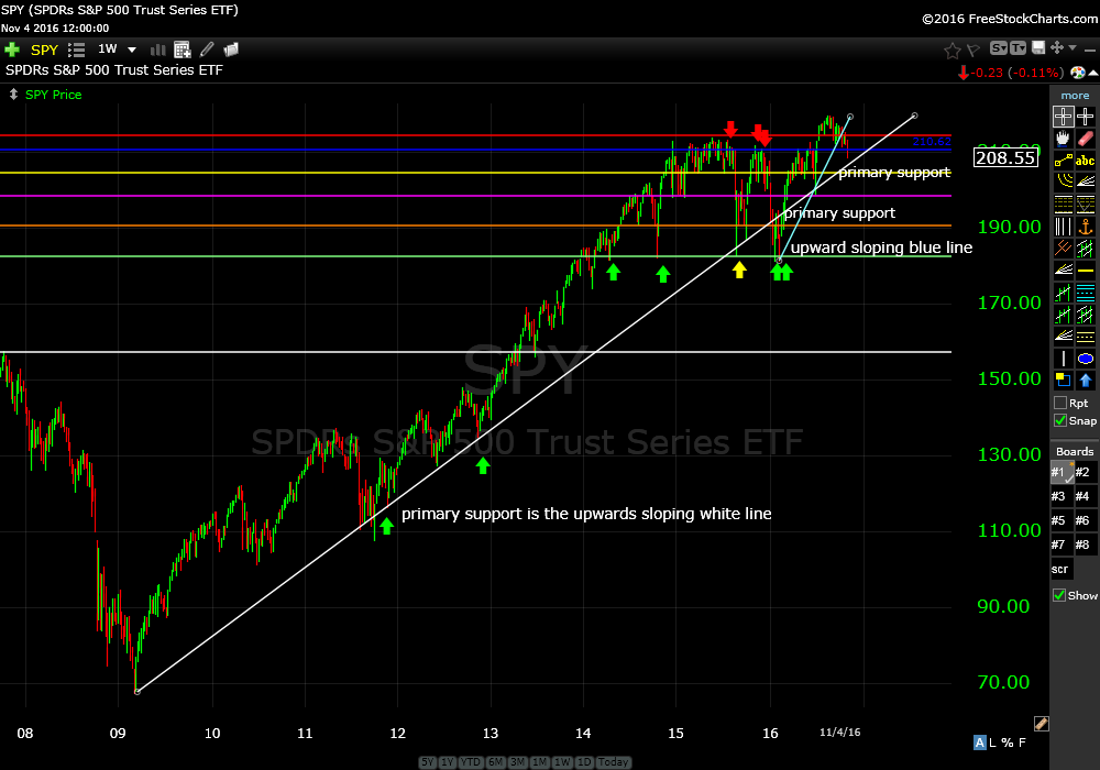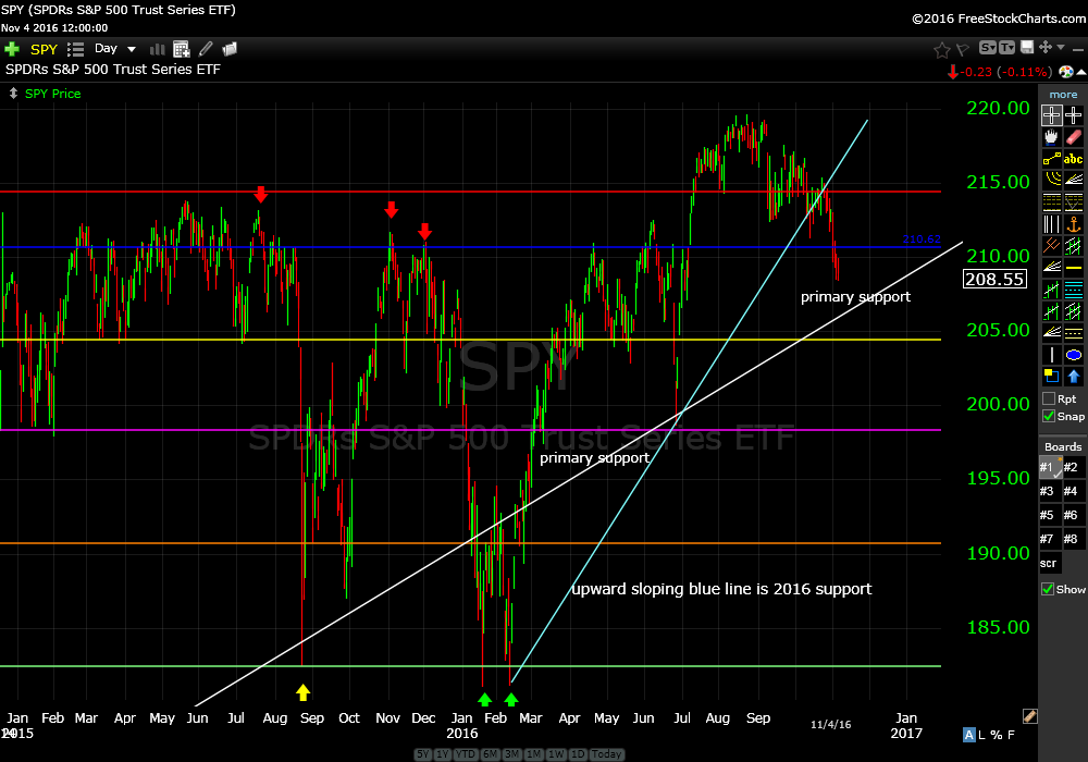 SPY has been selling off recently most likely due to the uncertainty of the election outcome. I would expect price to be all over the map next week.
