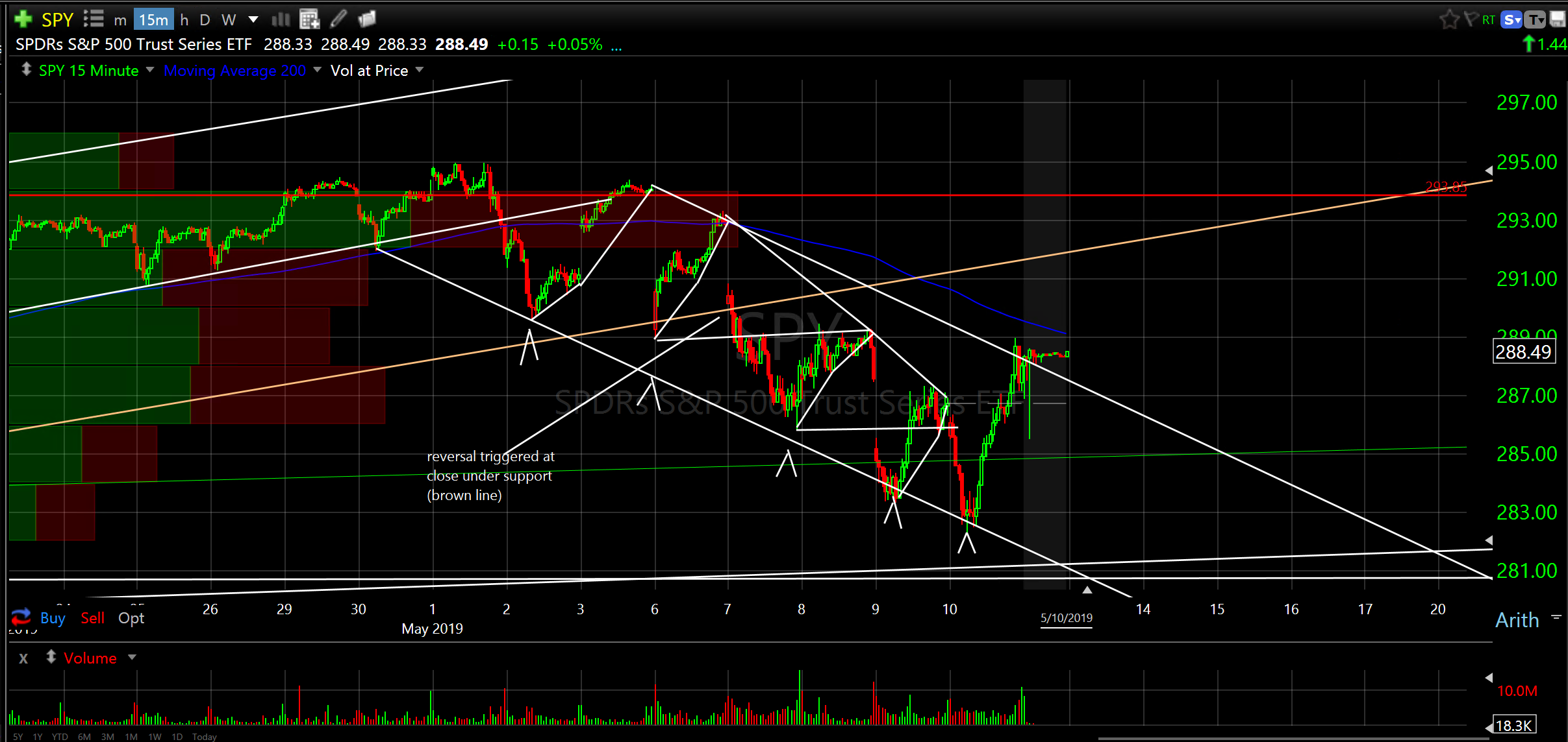 See both 15 minute chart and daily chart for perspective and outlook. Maybe the bottom will coincide with a China trade deal??