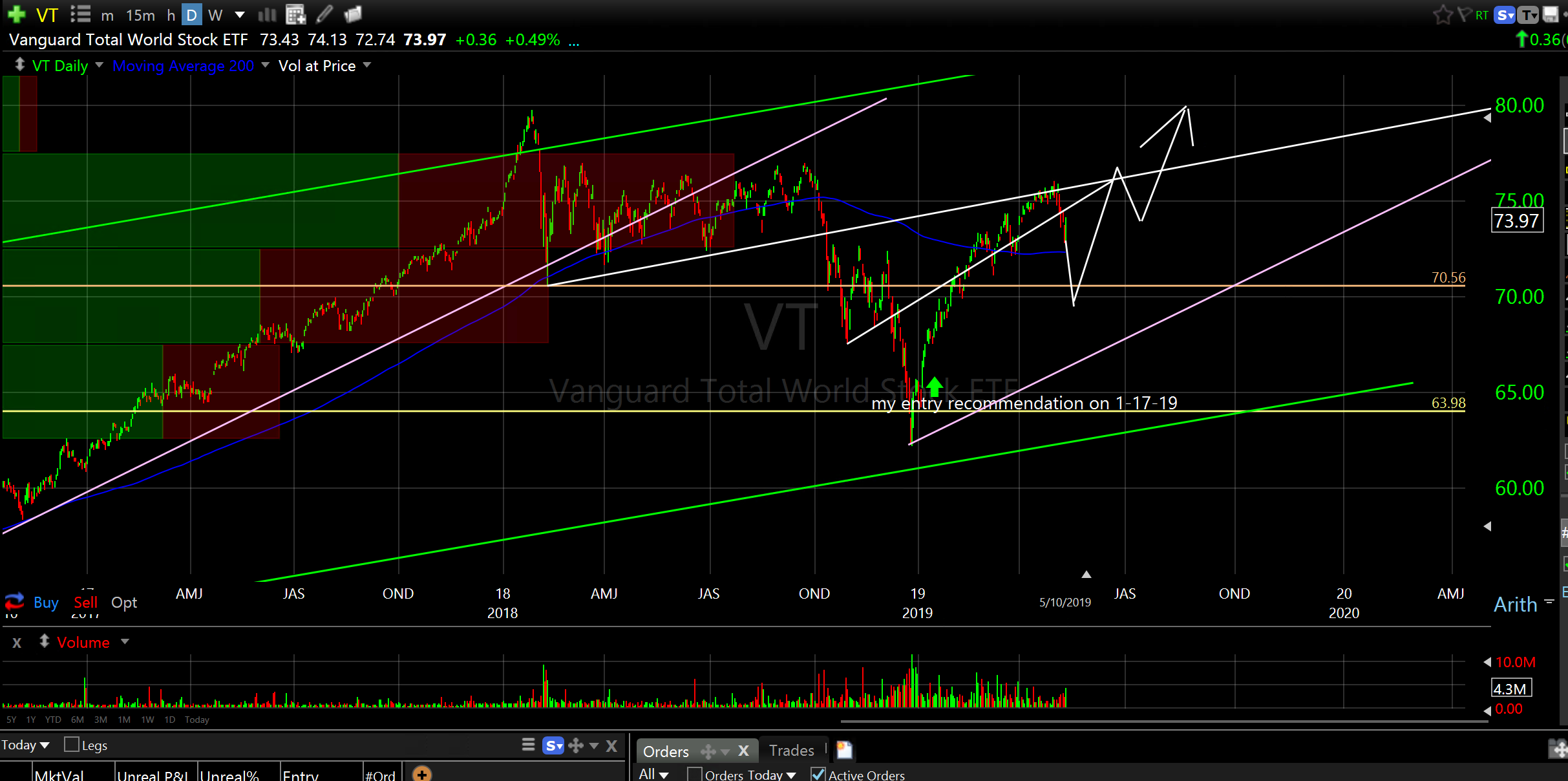 Vanguard Total World Stock ETF (VT) daily