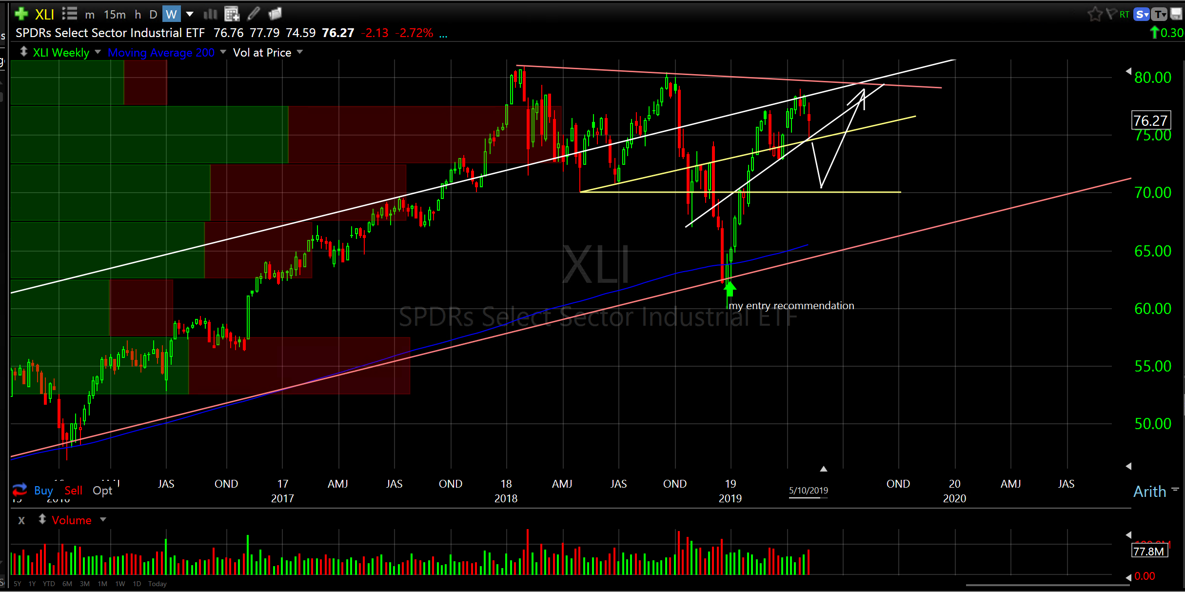 SPDR’s Select Sector Industrial ETF (XLI) weekly