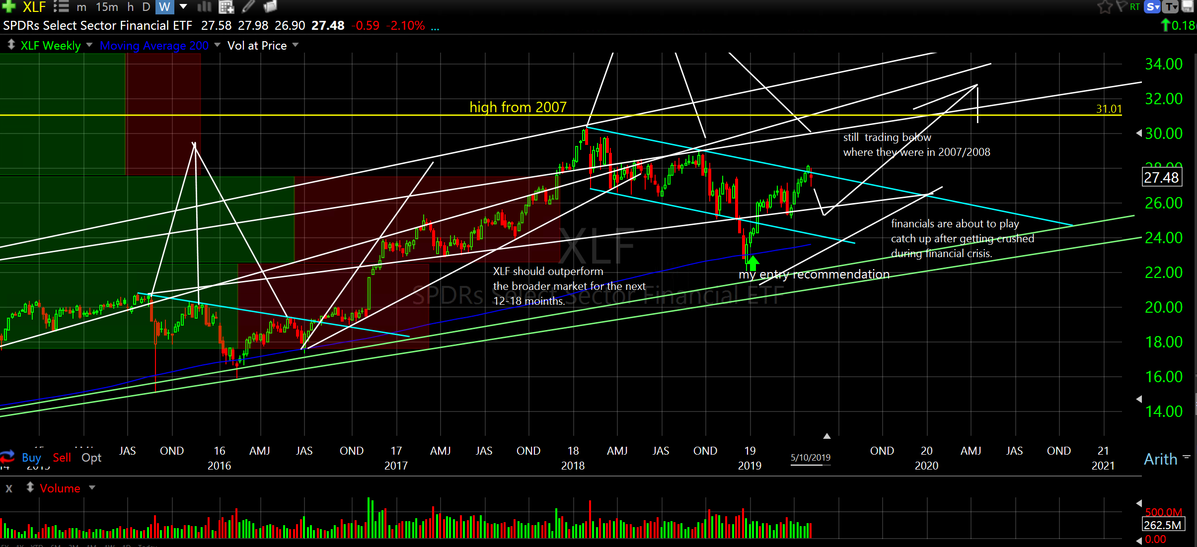 SPDR’s Select Sector Financial ETF (XLF) weekly