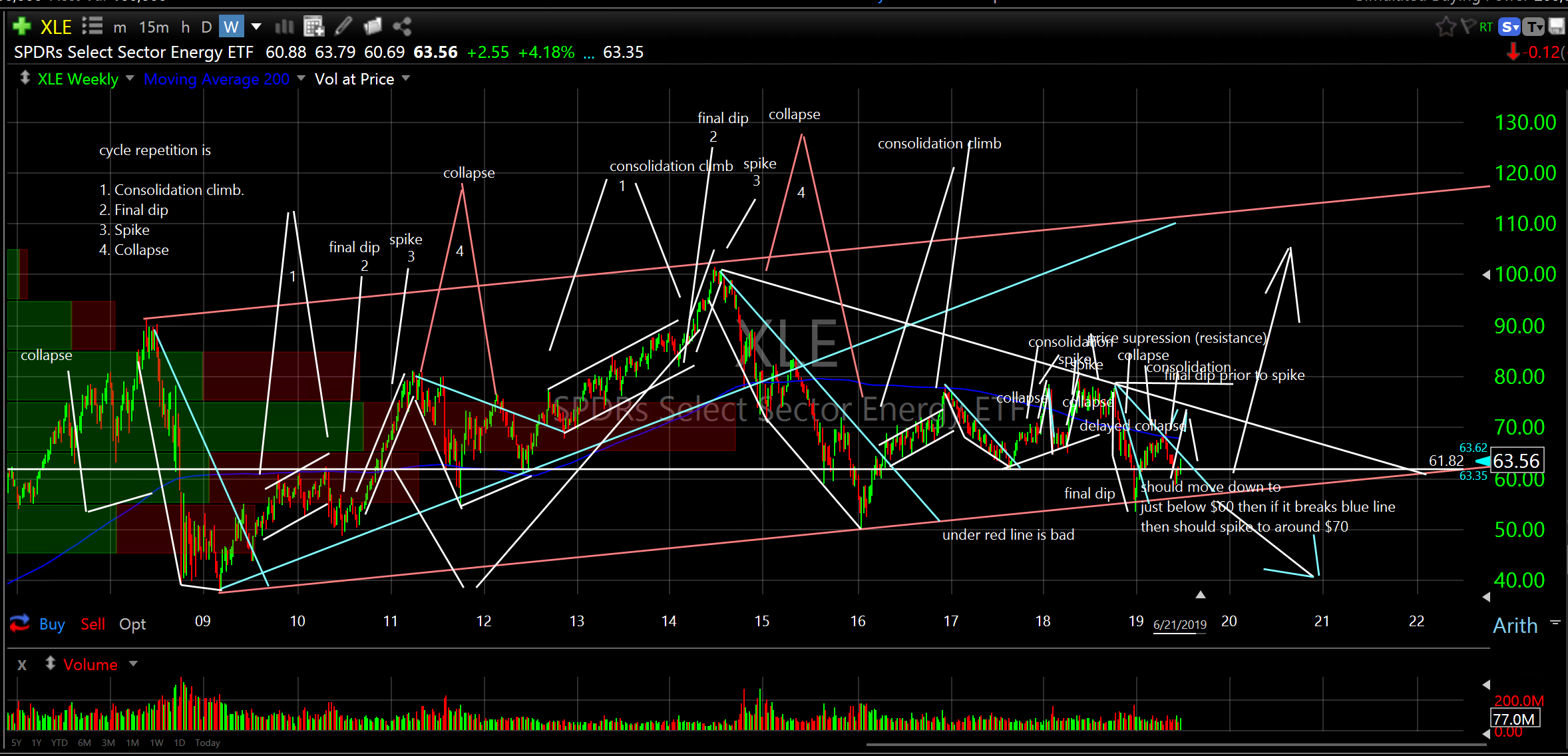 SPDR’s Select Sector Energy ETF (XLE) weekly
