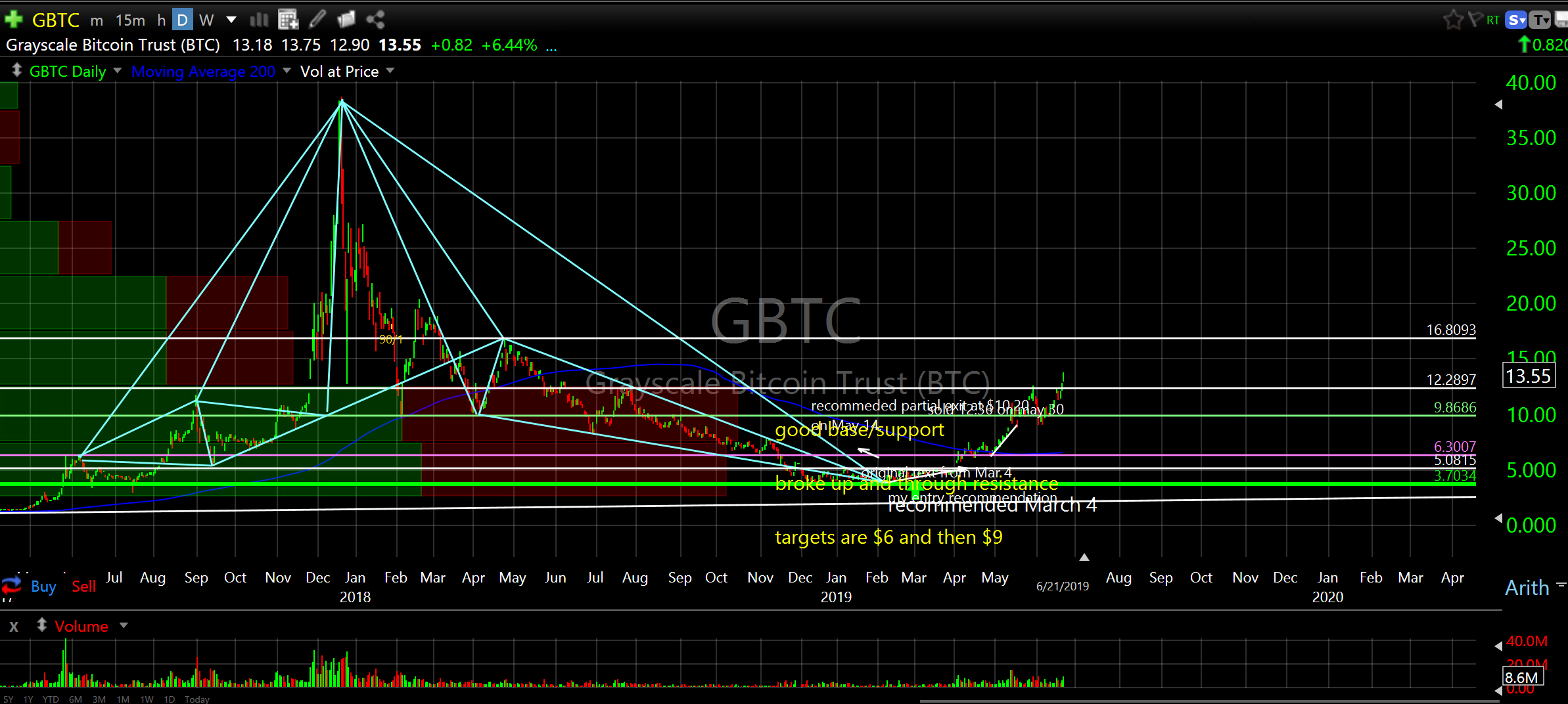 Grayscale Bitcoin Trust (GBTC) daily with wider perspective