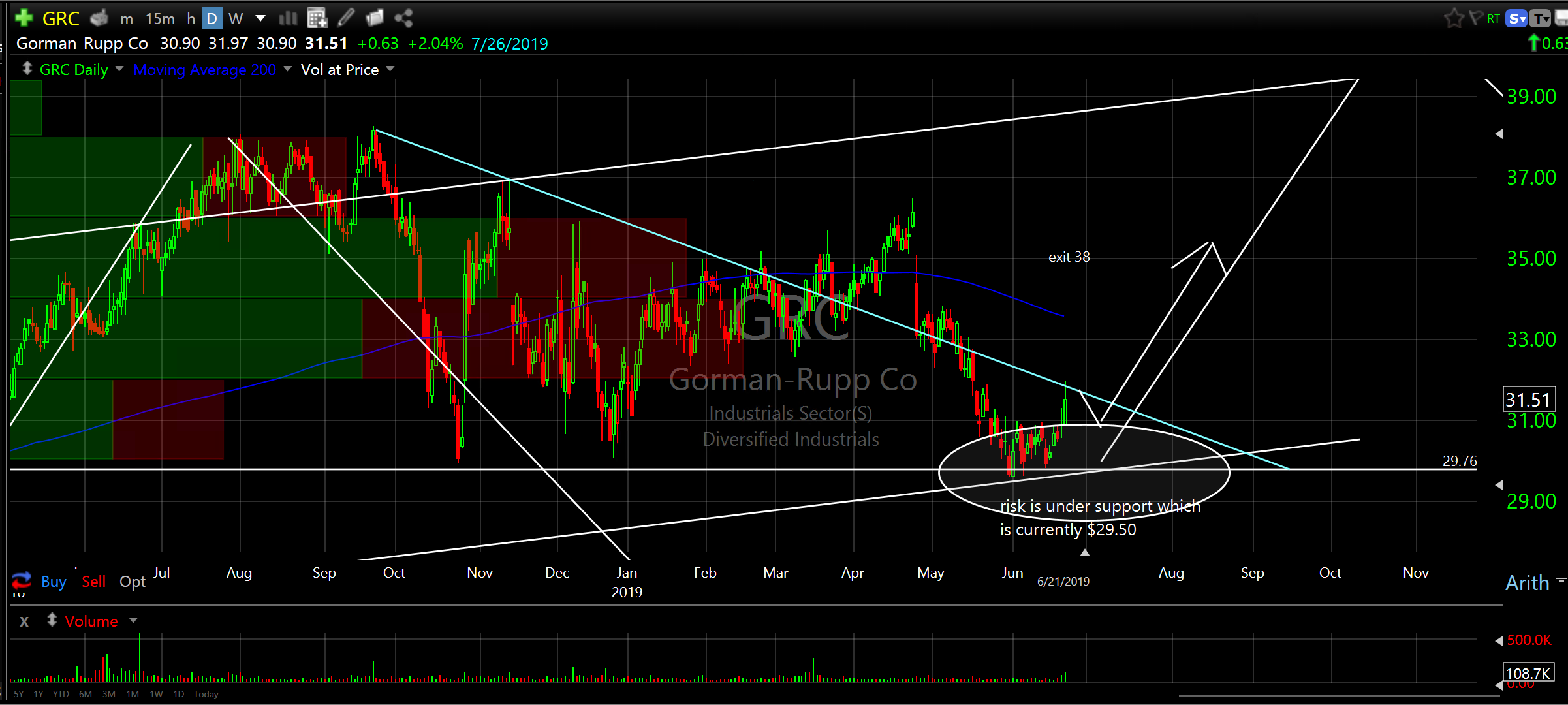 Gorman-Rupp Co (GRC) daily with narrower view