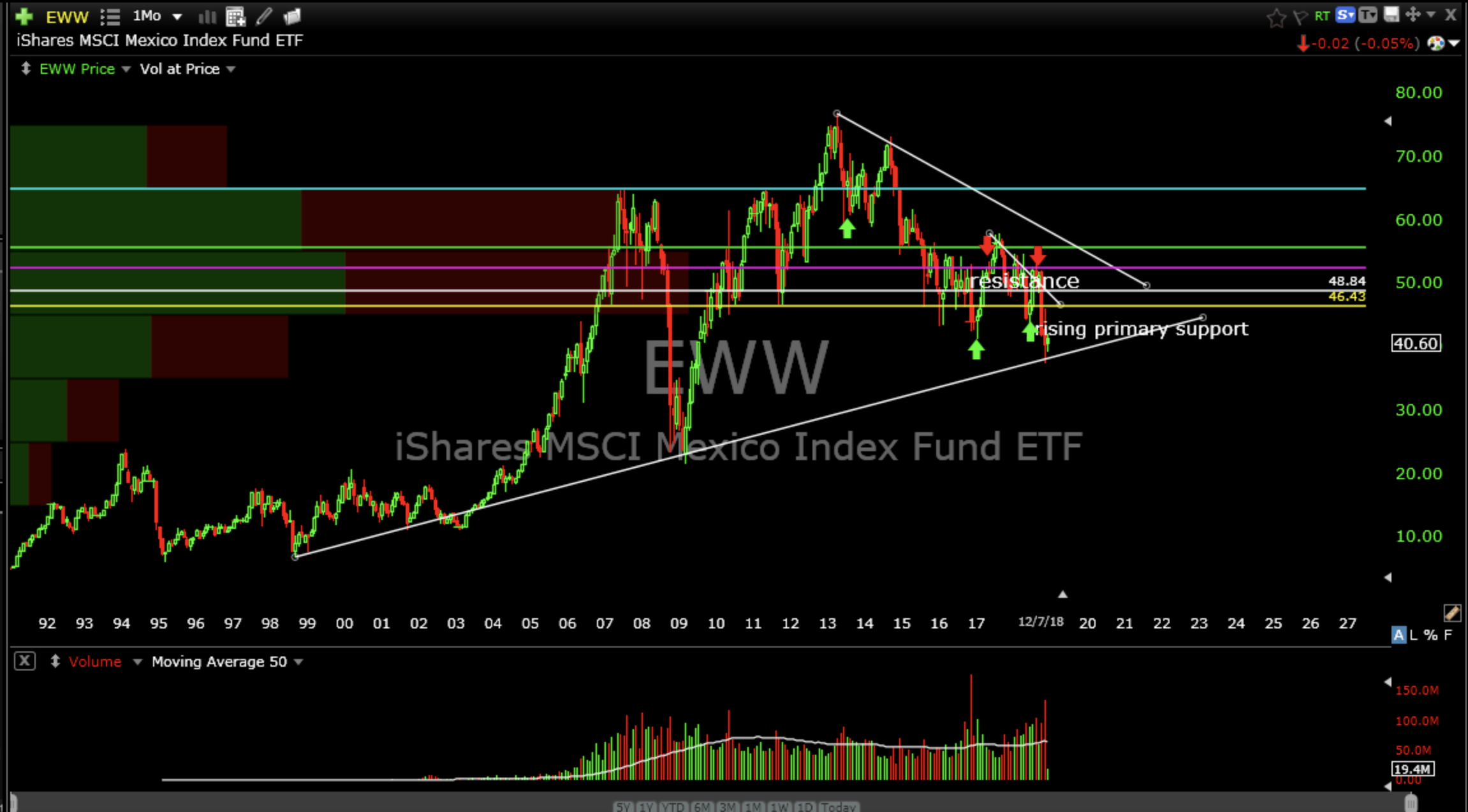 Major stock indexes all over the world sold off, again, last week. Well, except Mexico (EWW). EWW is popping off long term rising support. Go figure.