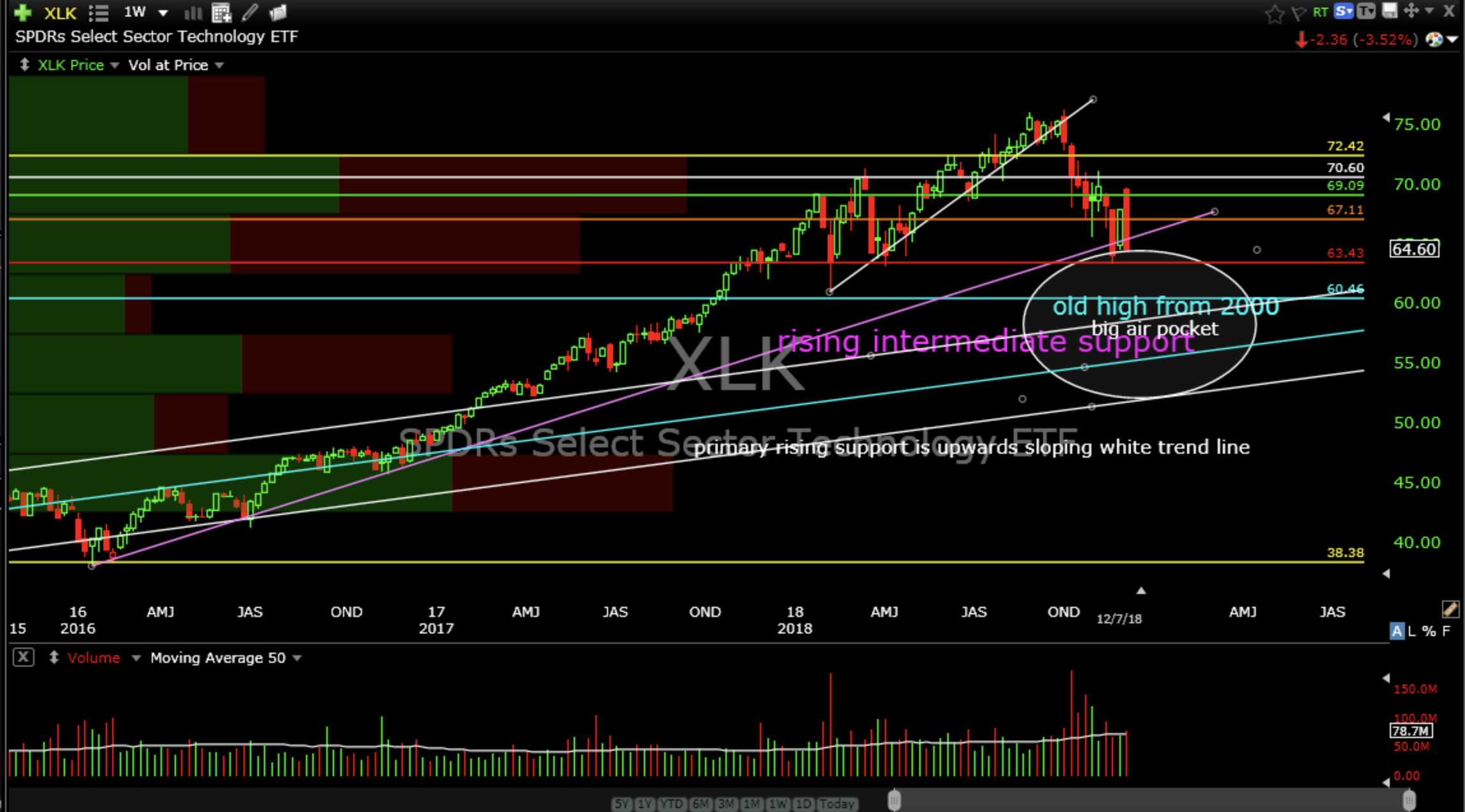 SPDR’s Select Sector Technology ETF (XLK) weekly
