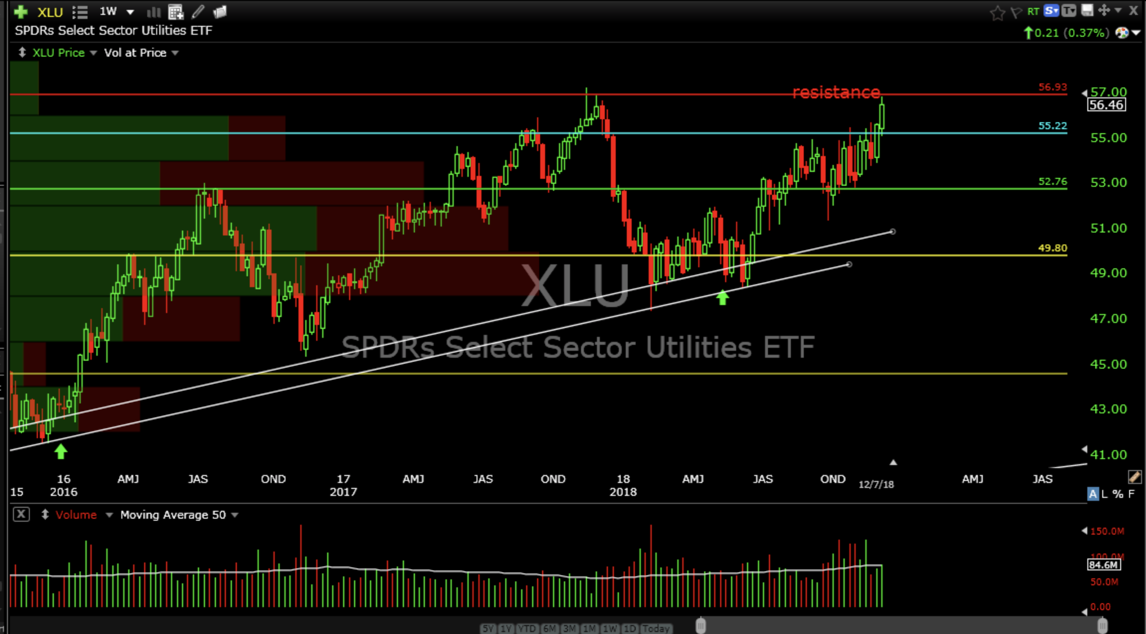 SPDR’s Select Sector Utilities ETF (XLU) weekly