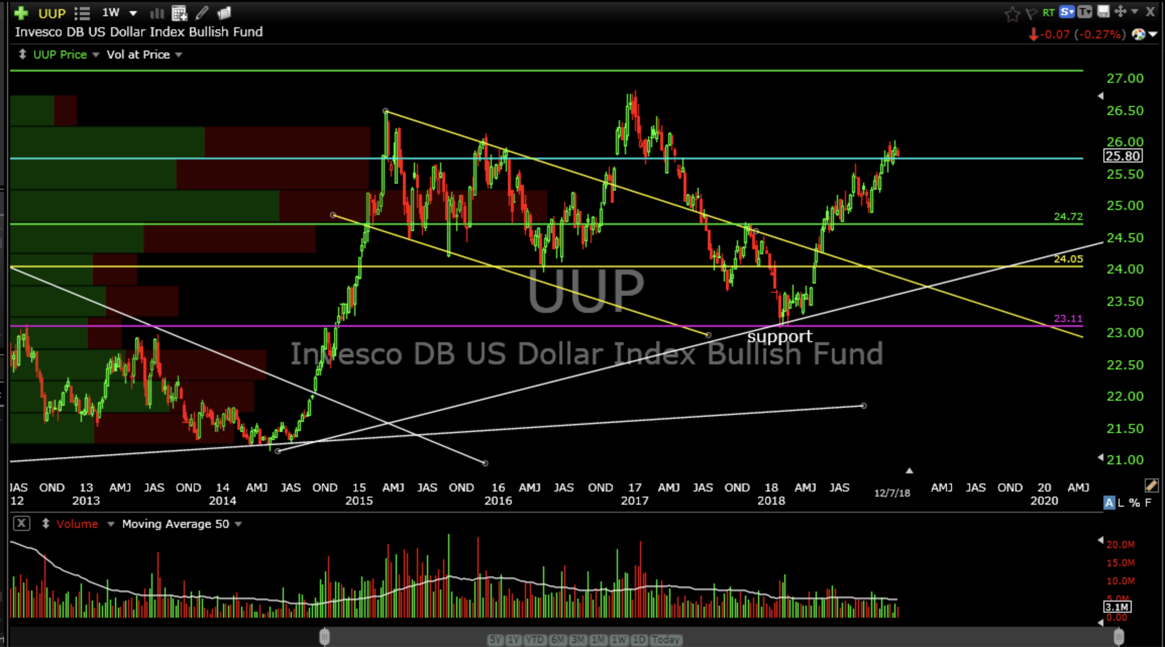 Invesco DB USDollar Index Bullish Fund (UUP) weekly
