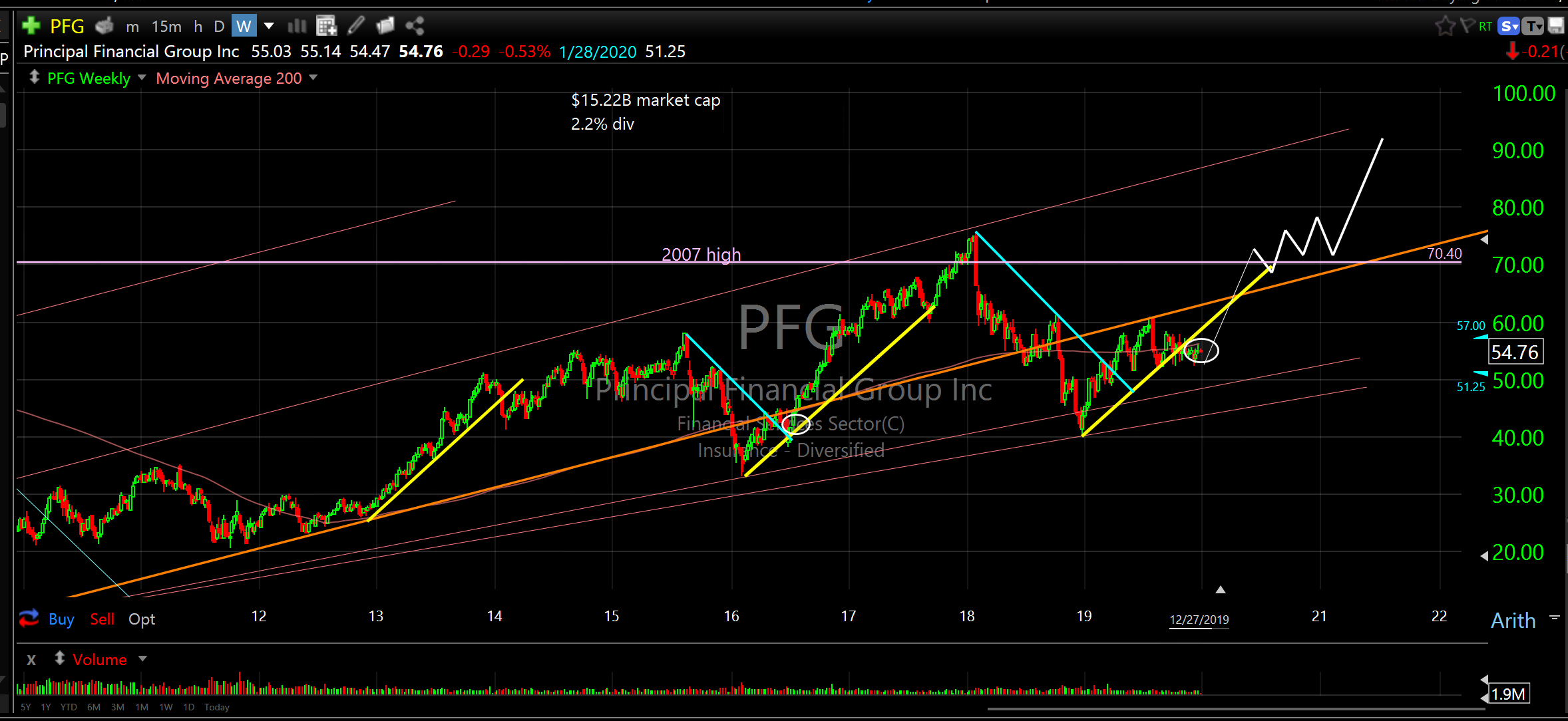 Don’t forget, you can get exposure to the Financial Sector with the ETF, XLF. It’s one of my favorites. Chart below.
