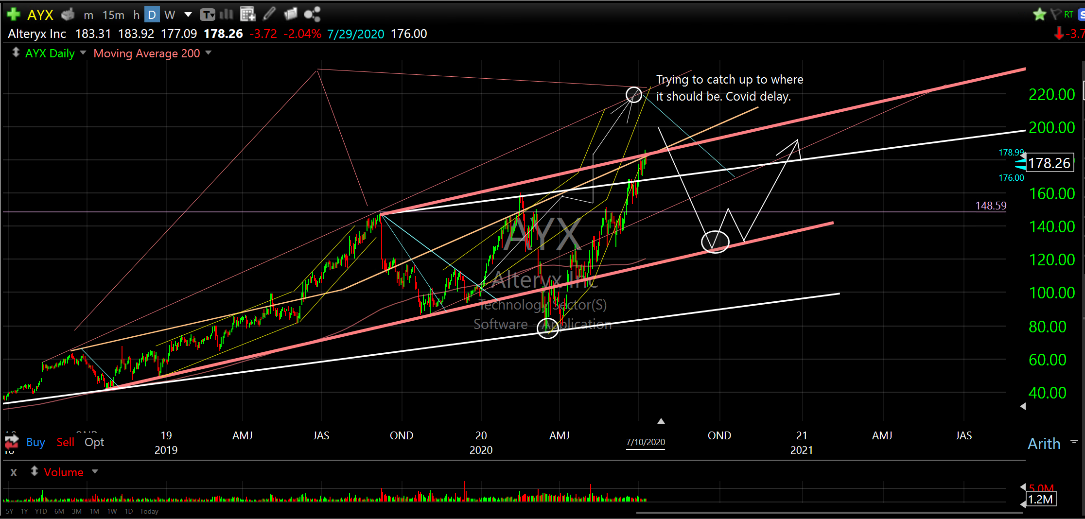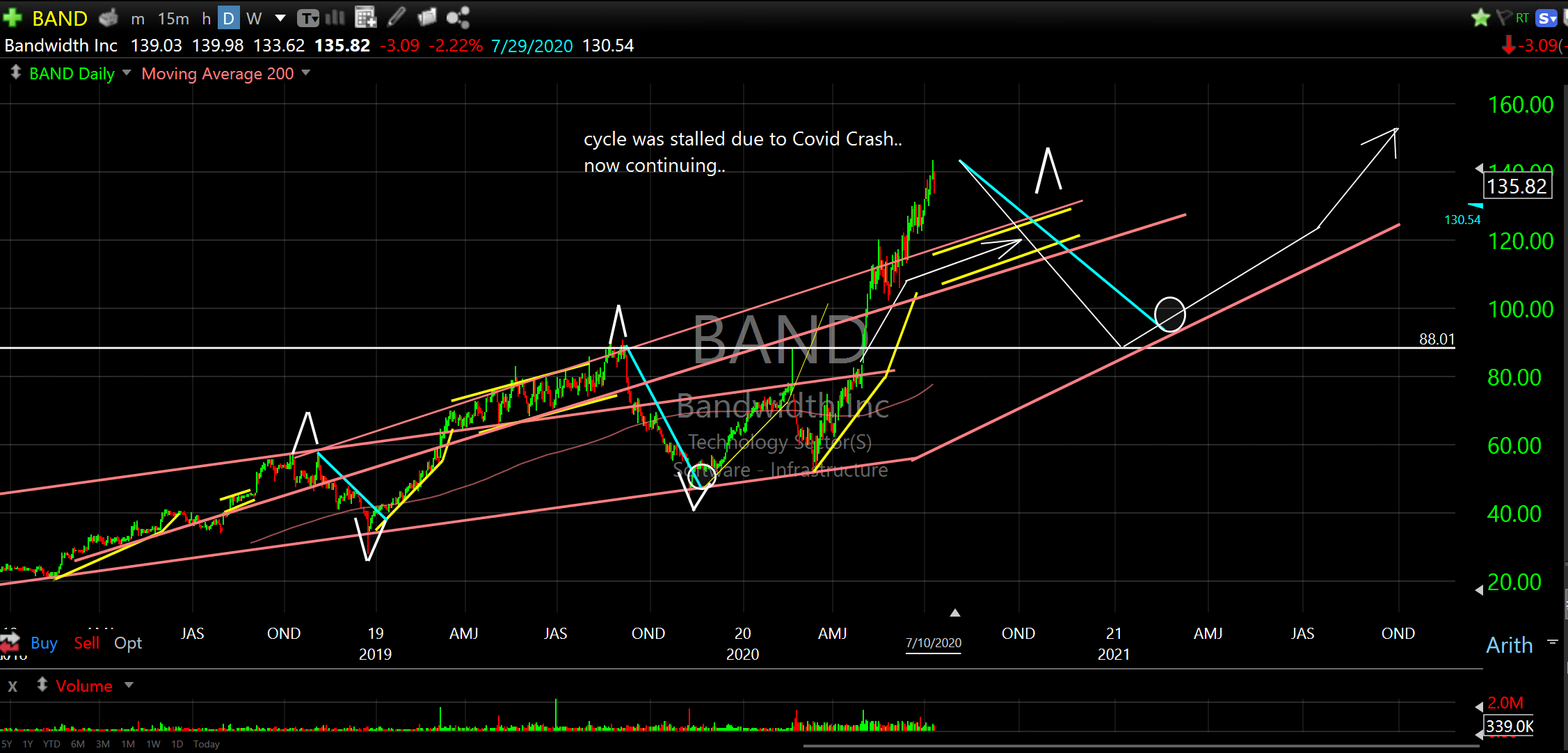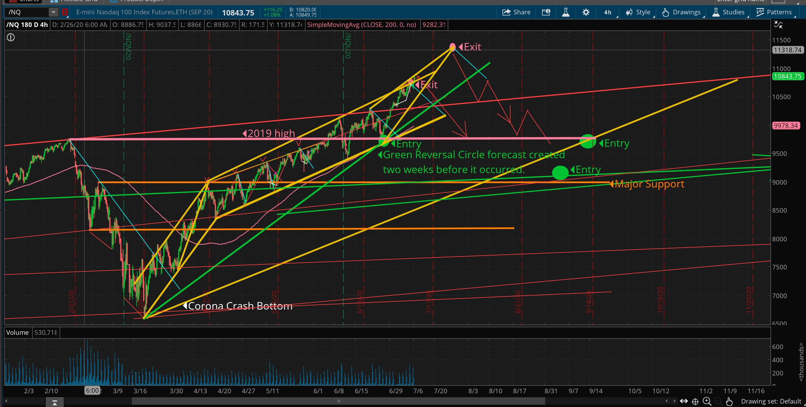 Nasdaq has just ripped higher from the Corona low and now it’s higher than it was prior to the collapse. The Dow and S&P 500 are following along like an old VW bus in a headwind (I know..I used to have one) since they are loaded with underperforming sectors unlike the tech heavy Nasdaq. Software companies (my long time favorites) are going through the moon and TSLA (see chart below for Entry Zone) has gone parabolic.