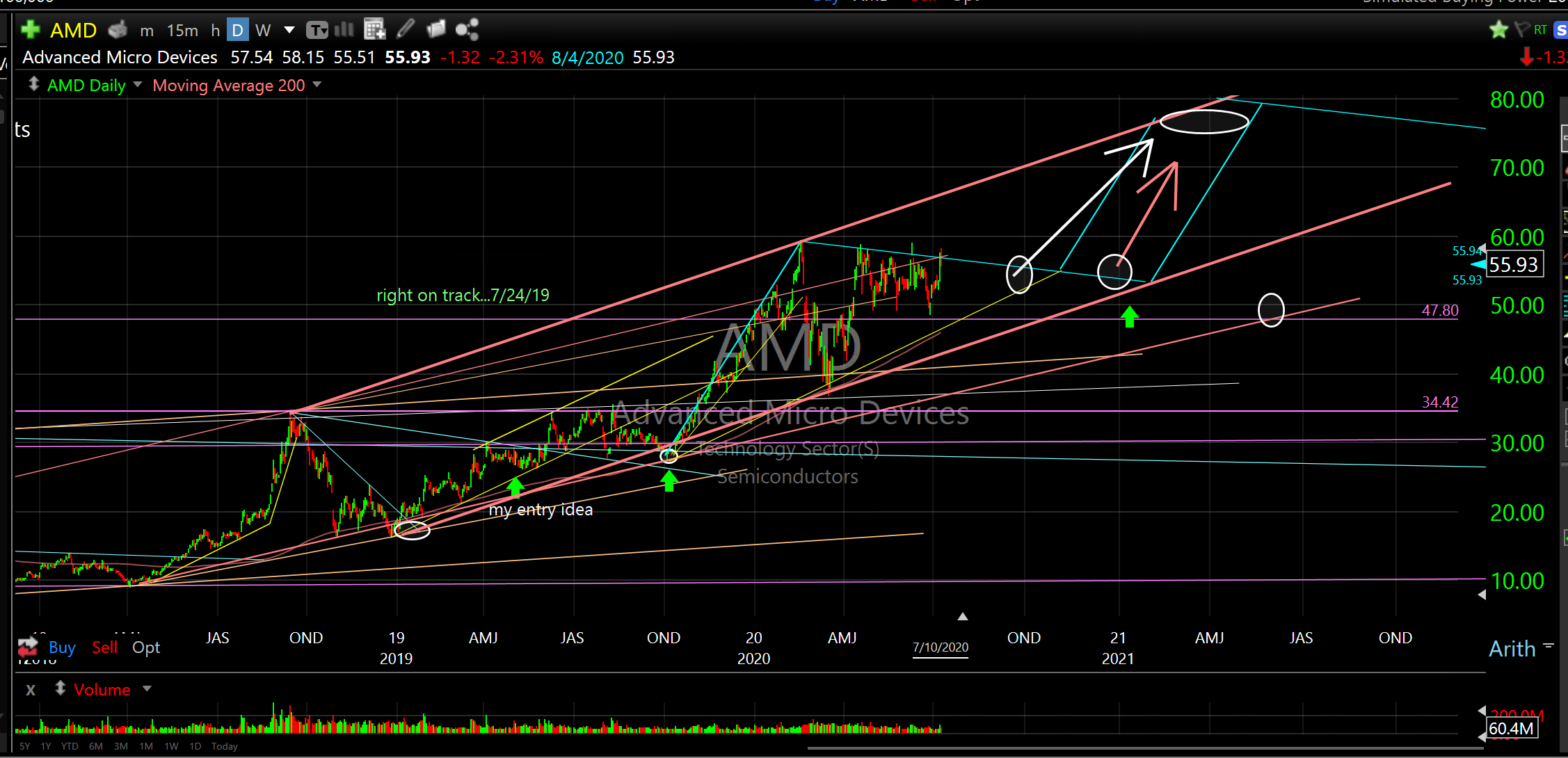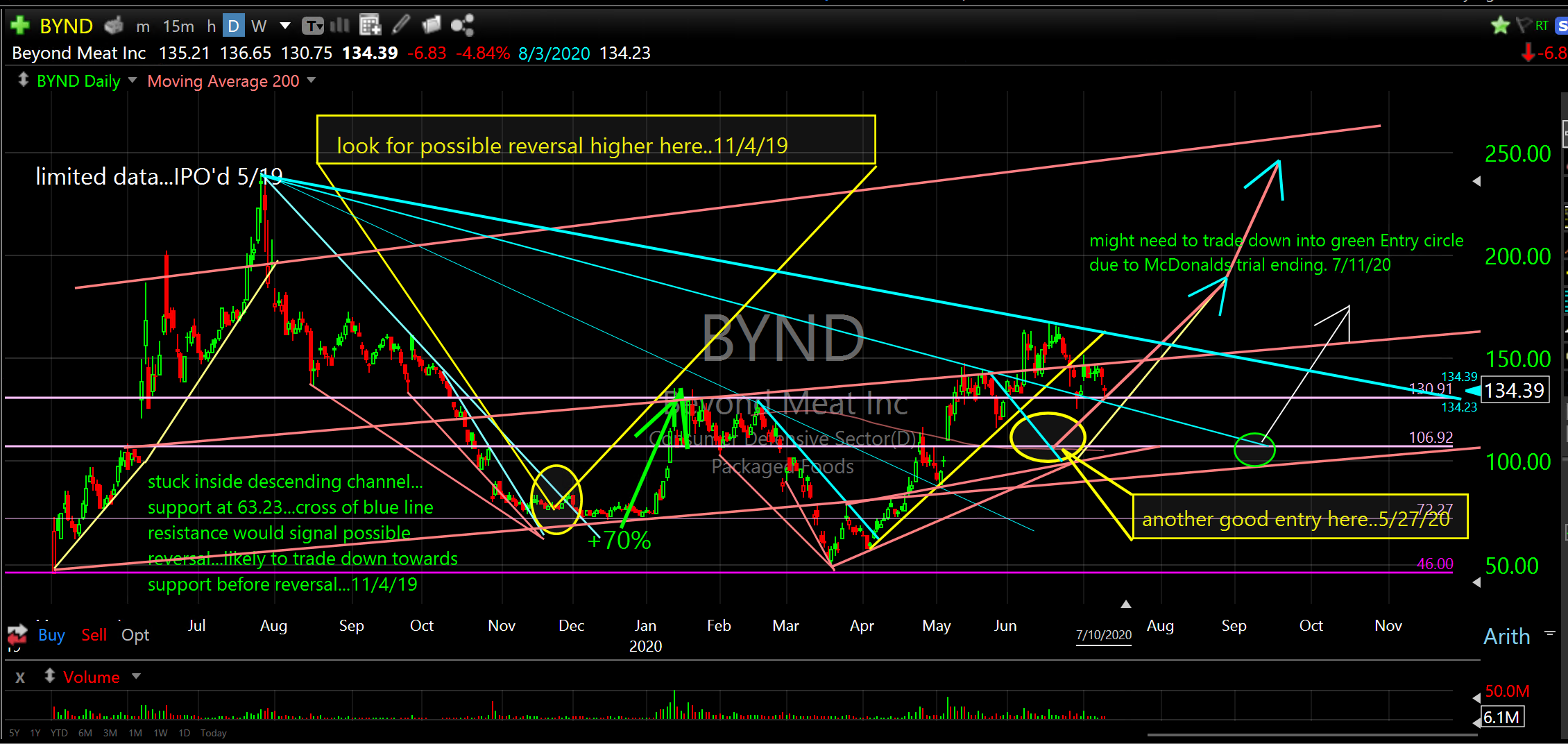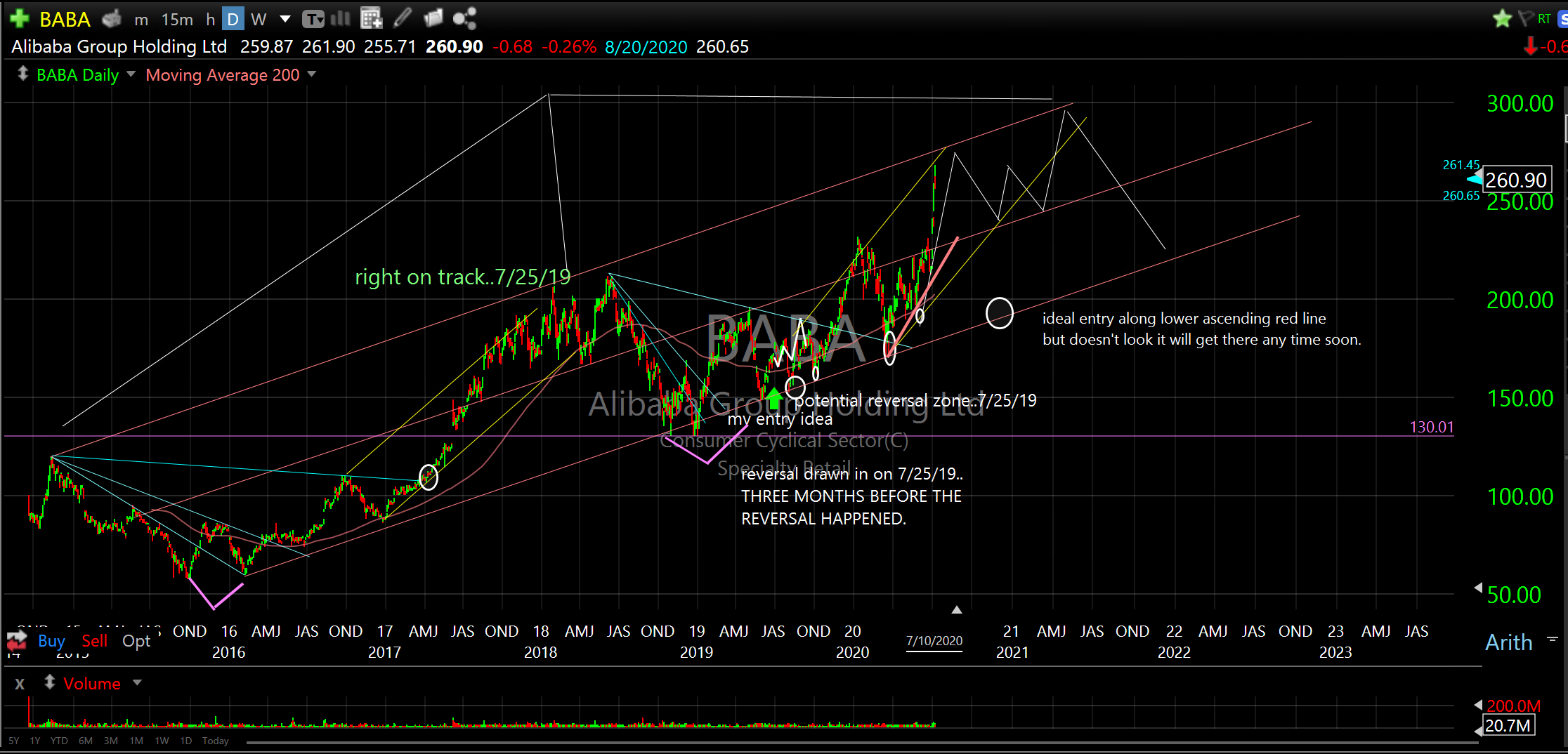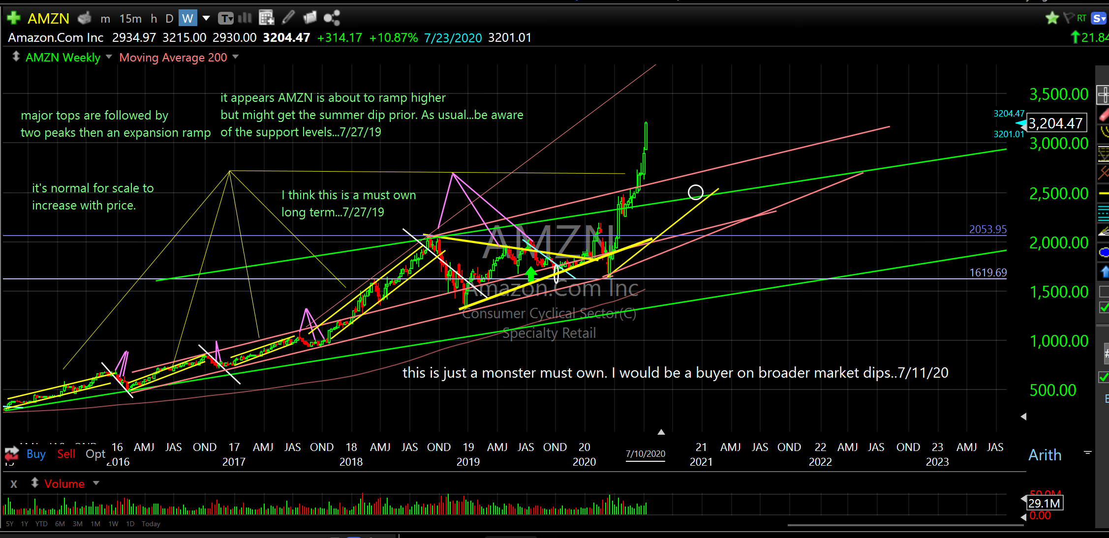 Nasdaq has just ripped higher from the Corona low and now it’s higher than it was prior to the collapse. The Dow and S&P 500 are following along like an old VW bus in a headwind (I know..I used to have one) since they are loaded with underperforming sectors unlike the tech heavy Nasdaq. Software companies (my long time favorites) are going through the moon and TSLA (see chart below for Entry Zone) has gone parabolic.