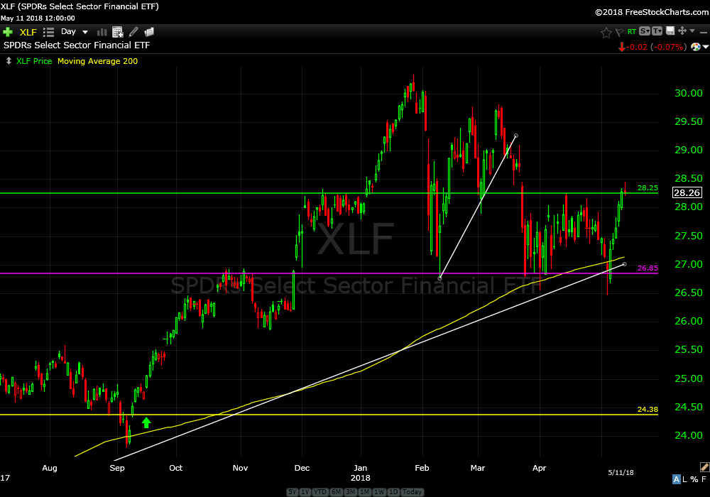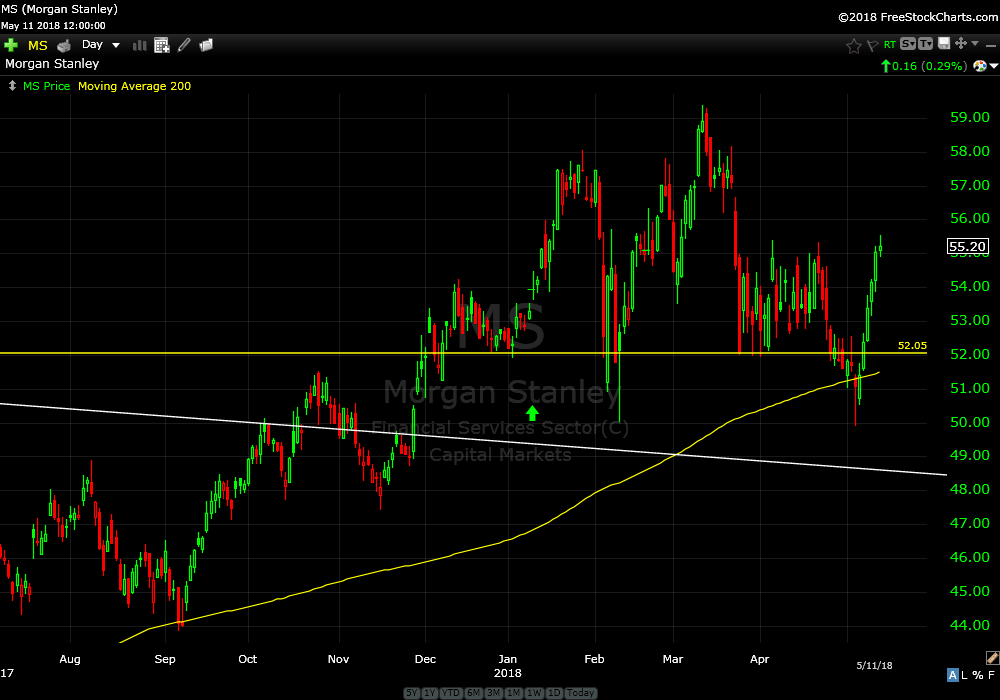 Morgan Stanley (MS) got a nice bid last week as well as XLF, the financial sector ETF. Looks like clear sailing ahead.