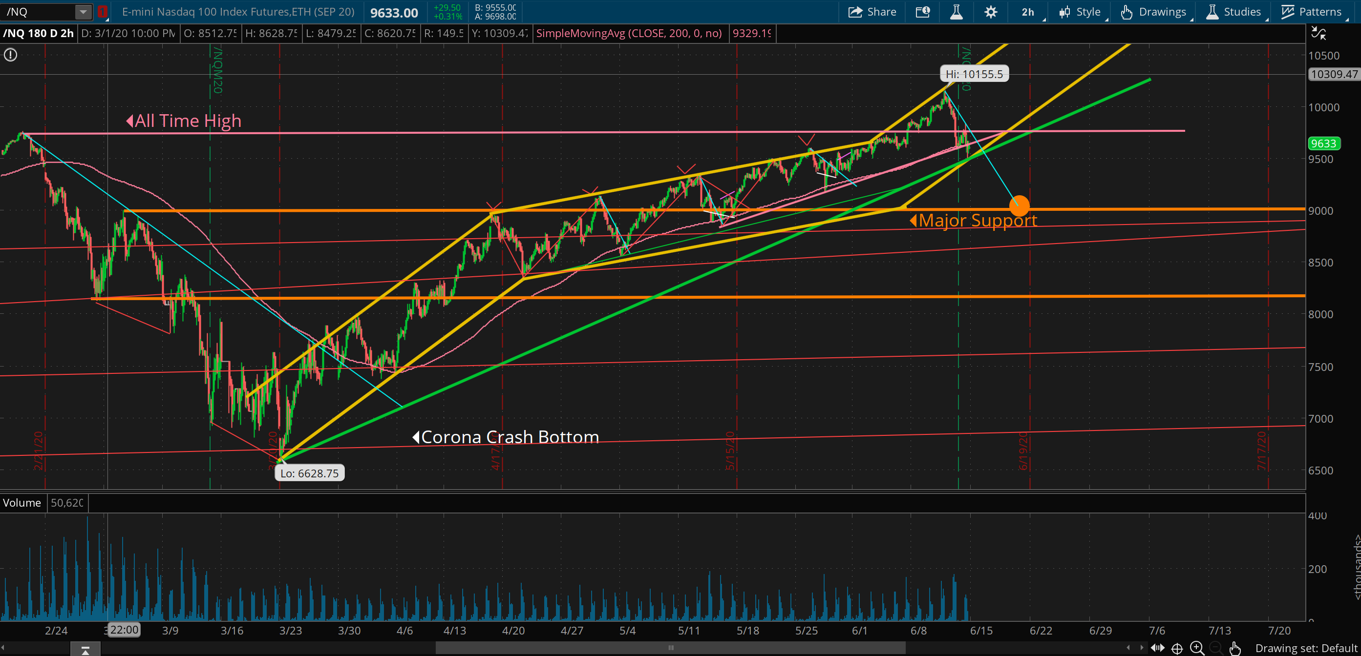 While they can certainly continue to trade up from current levels (unsustainable trajectory longer term) which do provide some support let’s examine what happened last week and what would likely be a worst case scenario over the near term.