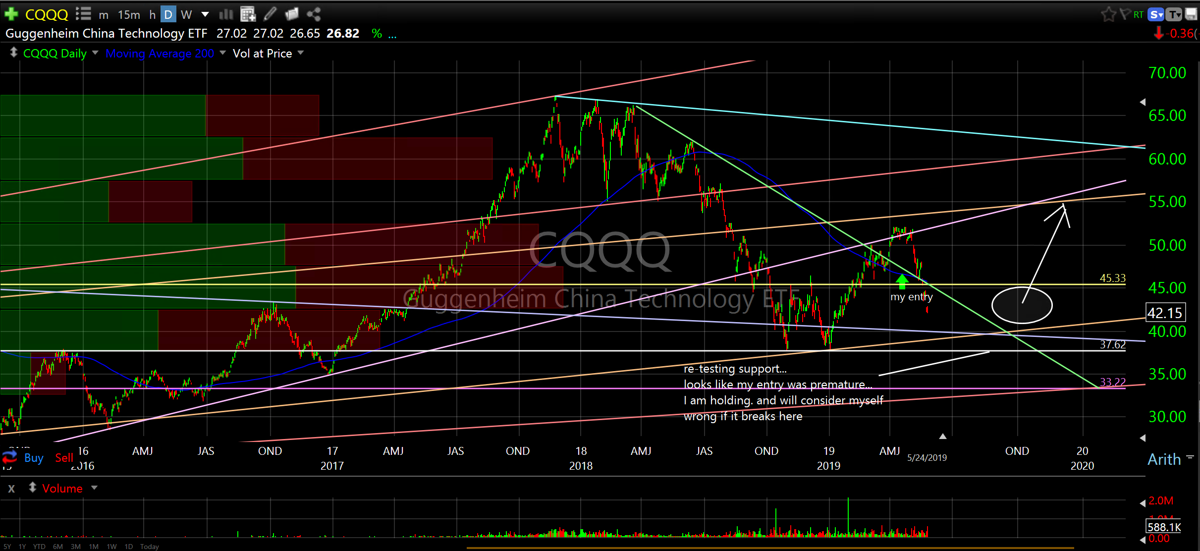 Make sure you watch semis (SMH) this week. I posted the chart in Part 1 yesterday. We are at/near important levels all over the map (SPY, DIA, IWM, QQQ). If we break support, price will be seeking even lower levels. Good news/bad news. The good news is that if we get lower that should help propel the broader market higher. Think of the market like a rubber band. When it gets stretched too far it will snap back. We have been snapping for a year and a half. Enough already! We want to go back to normal behavior. If we don’t bottom and reverse around current levels we may have to wait until summer/fall before reversing.