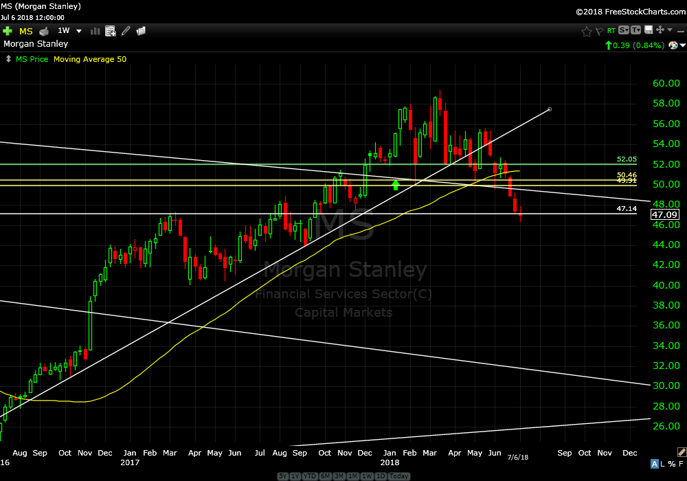 I recommended Morgan Stanley (MS) on January 8th this year. It is down about 11%. It looks broken after support violation. Sell it and limit losses.