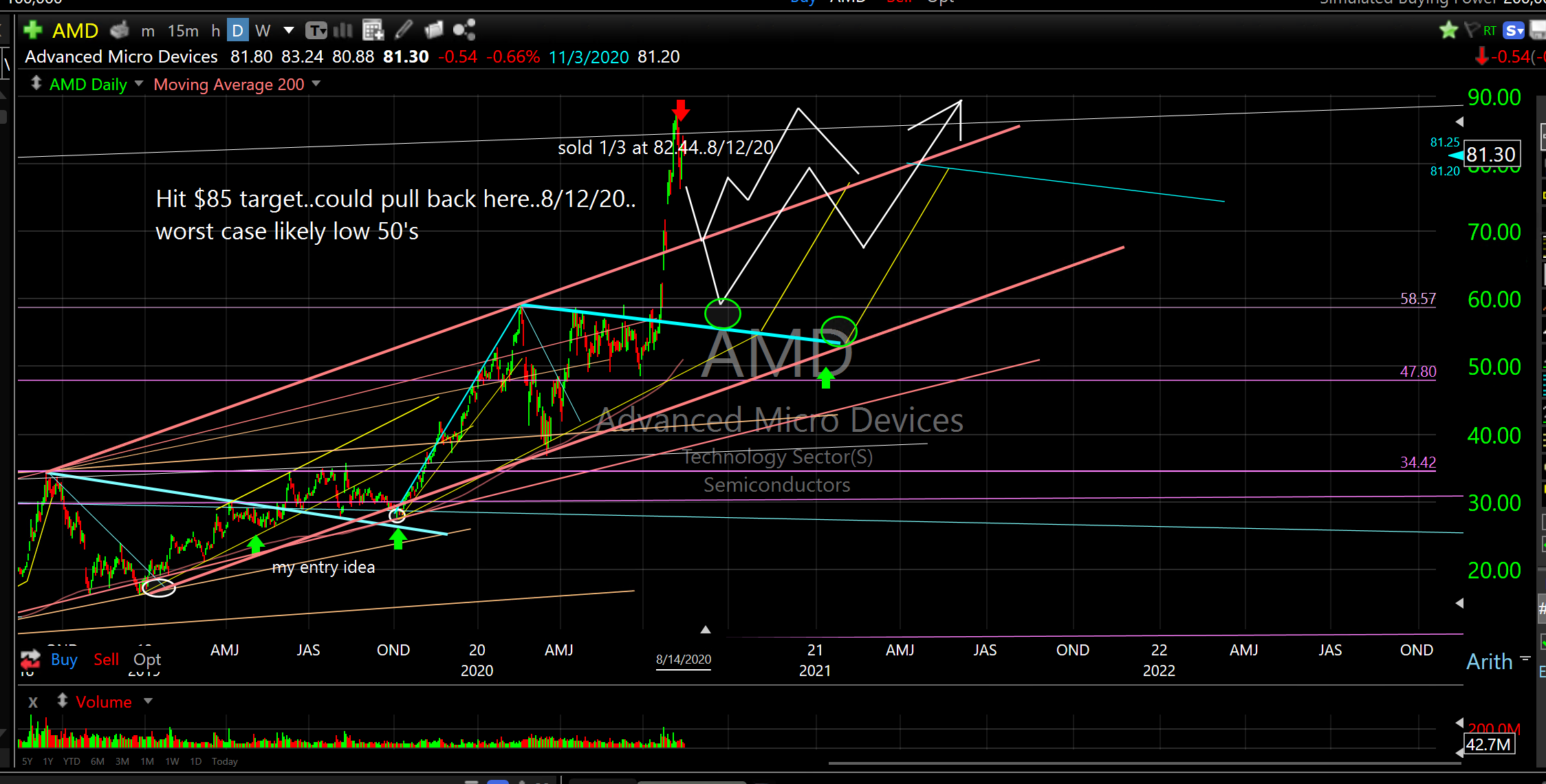 I did buy some TSLA last week. Price crossed over important resistance and broke its historical pattern. This could signal another huge expansion like we saw recently and I want some exposure as TSLA is really the only one I missed last year after letting fear get in my way when I knew to buy it under $200.