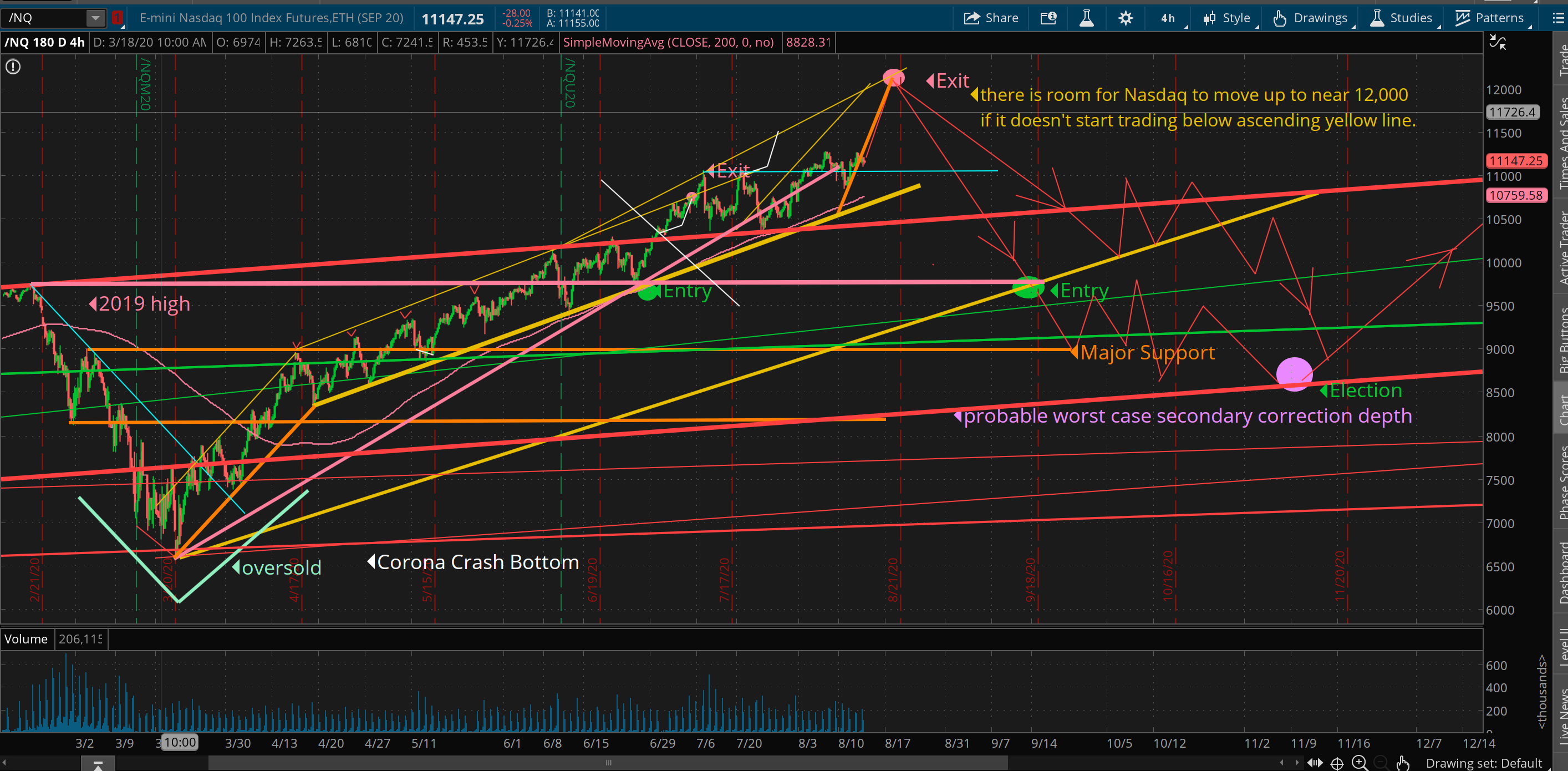 With QE 5X or whatever the stimulus turns out to be, it’s rocket fuel until it isn’t. I feel pretty good about being 35% in cash after about three weeks of trimming on the way up. I bought some TSLA and SPCE last week and I’m ready for opportunities as they present and I’m prepared for the lower entries I expect nearer election time.