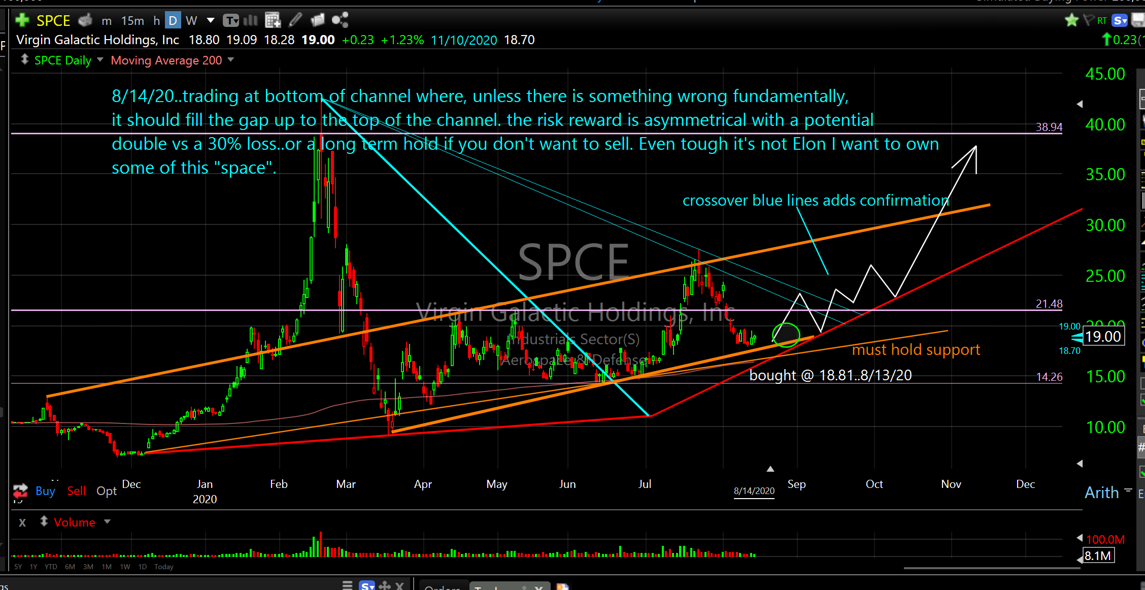 I also bought some SPCE. I know its’ not Elon but it might be a sympathy play, I like the risk/reward and I want some exposure here.