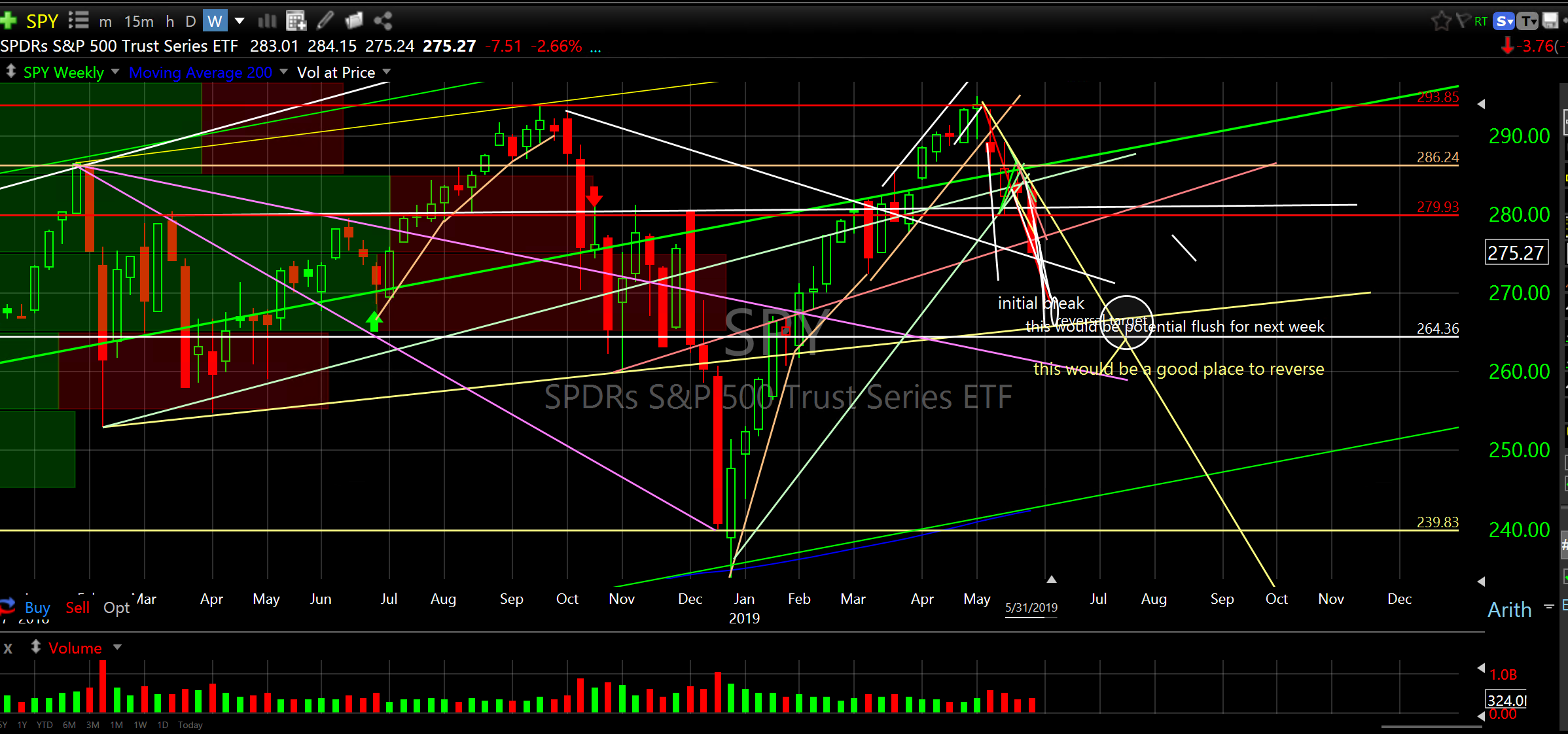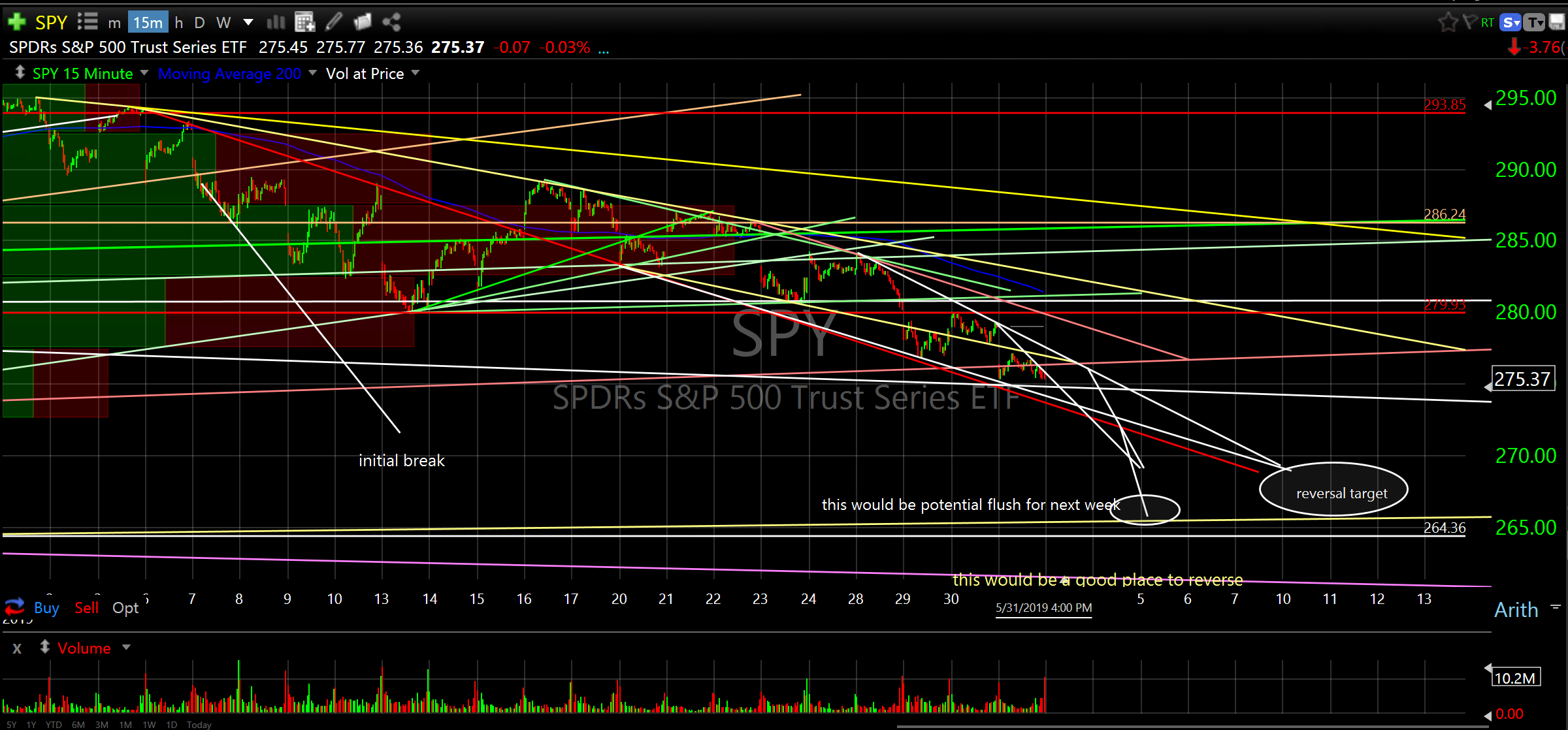 Well, you can’t say I didn’t warn you. Friday was a face ripper. More support broken. Descent is getting steeper. Hold on. I think we are almost down. Hard deck looks to be SPY 265/270.