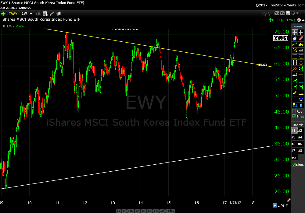 iShares MSCI South Korea Index Fund ETF (EWY) weekly