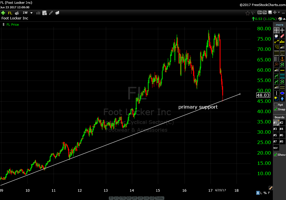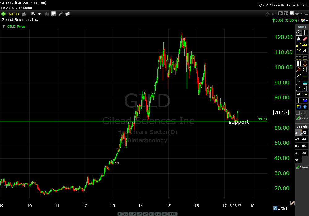 Current price has been solid support for 12 years. On the other hand, this support level has held and bounced 4 times in the past 12 years. There is a good possibility that this support zone has become weak and if breached it might present a nice short sell opportunity. I’ve got my eye on it.