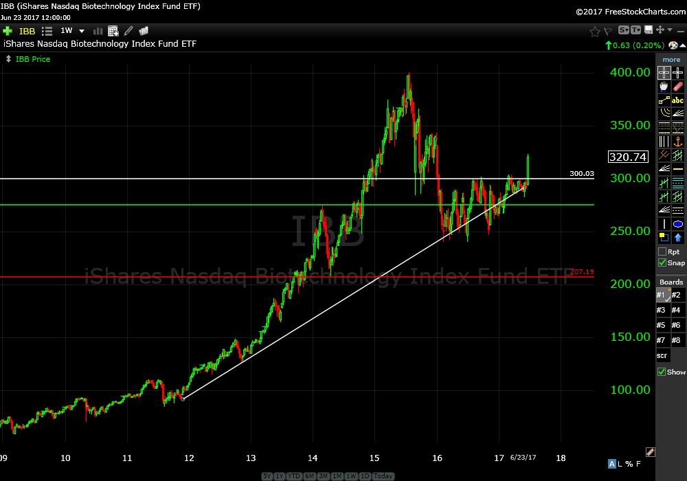 I almost recommended this a few days ago when I recommended XLV but IBB shot up so fast that I felt there was too much risk. Waiting for a pullback to get a better price.