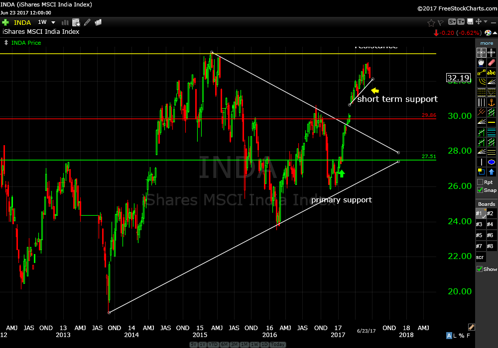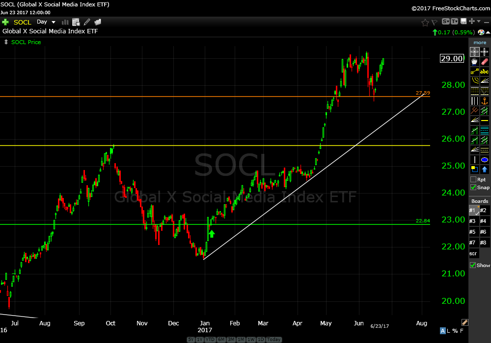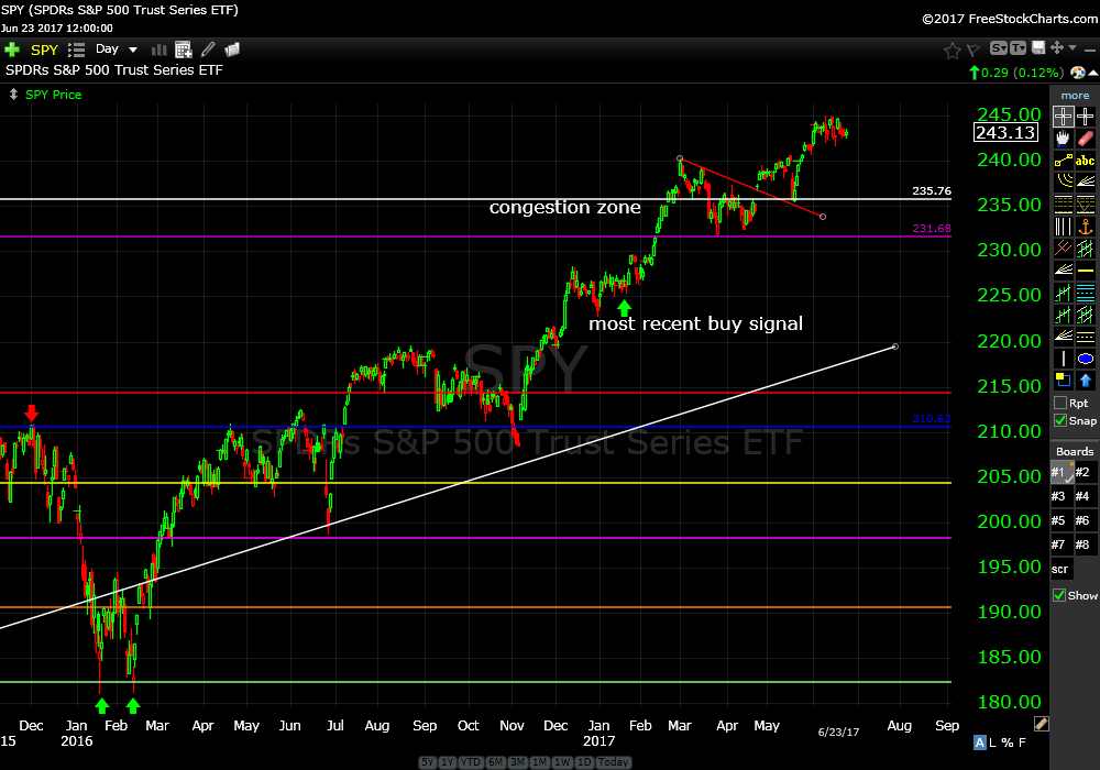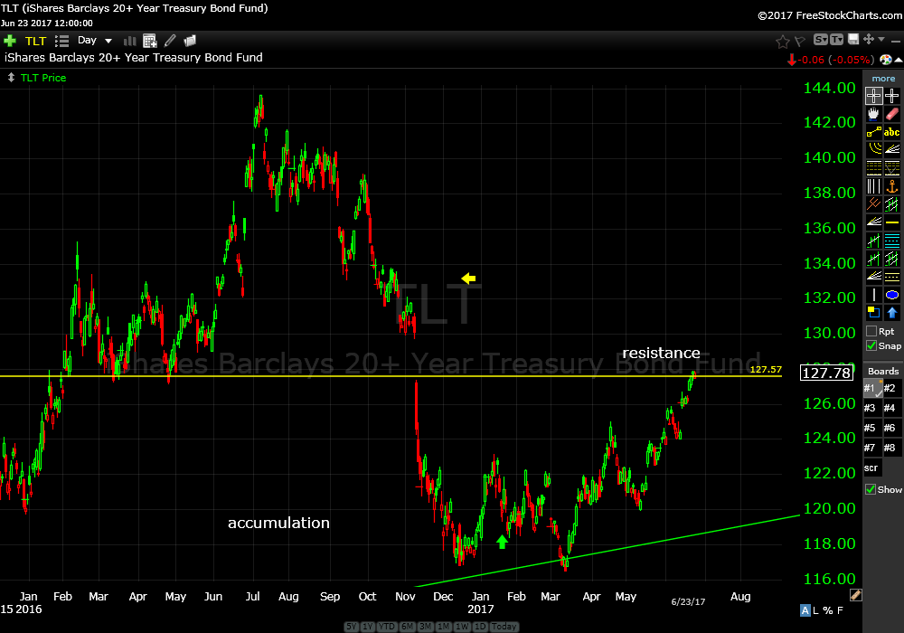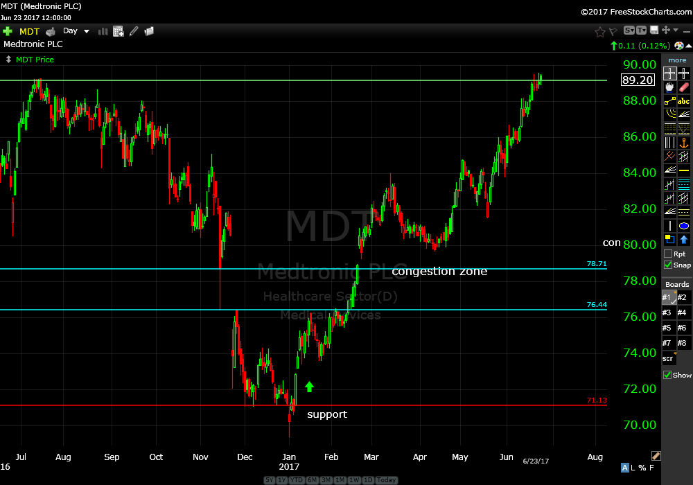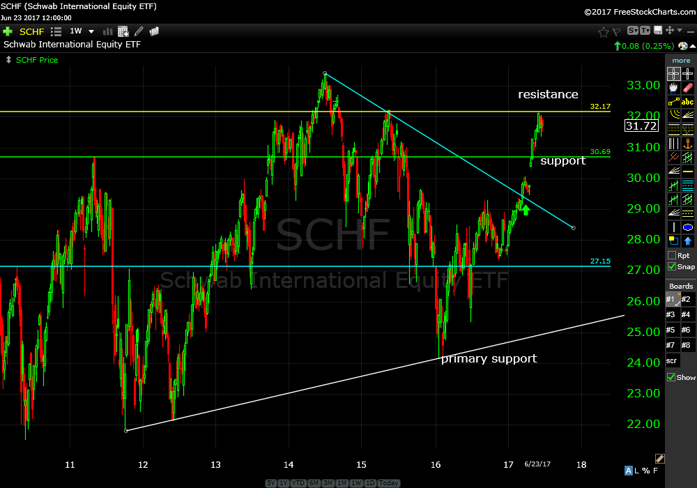 Price is up about 6.5% from our recommendation in March. Price has run into resistance, an important high from 2015. If price can’t clear resistance I will most likely recommend selling and capturing gains soon.