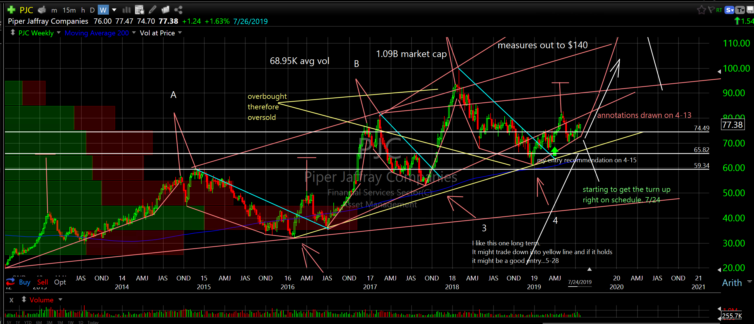 Piper Jaffray Companies (PJC) weekly