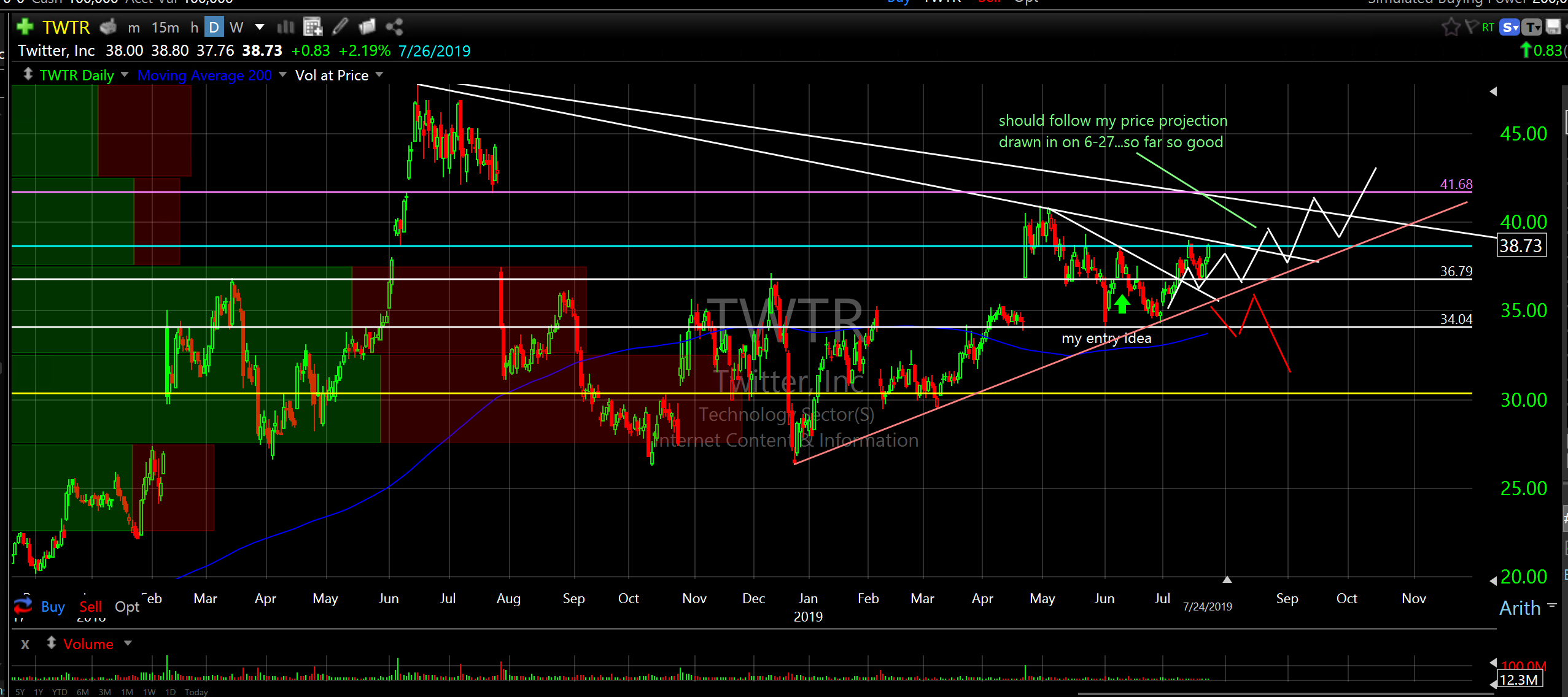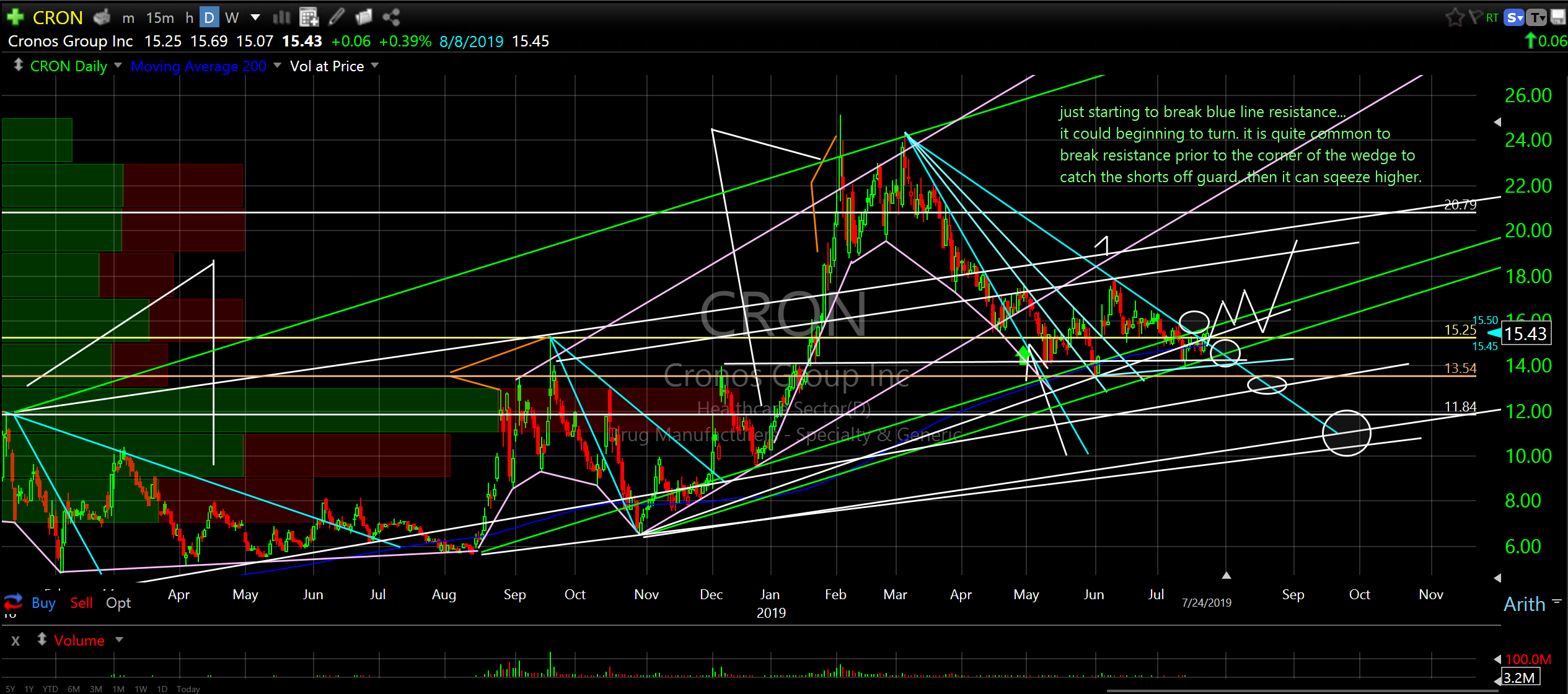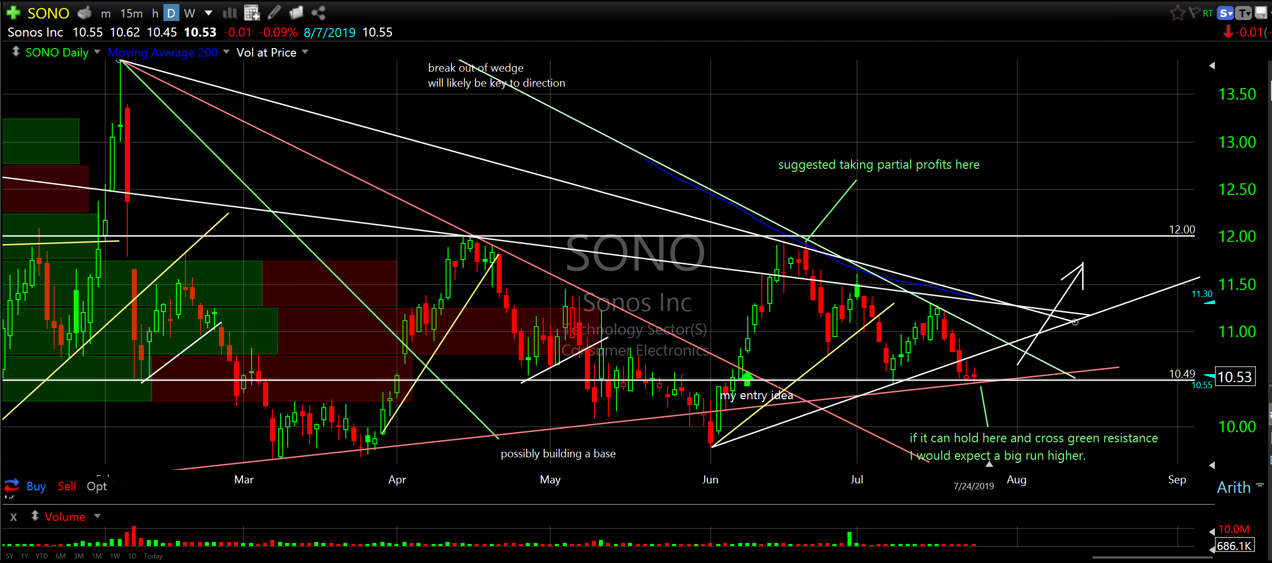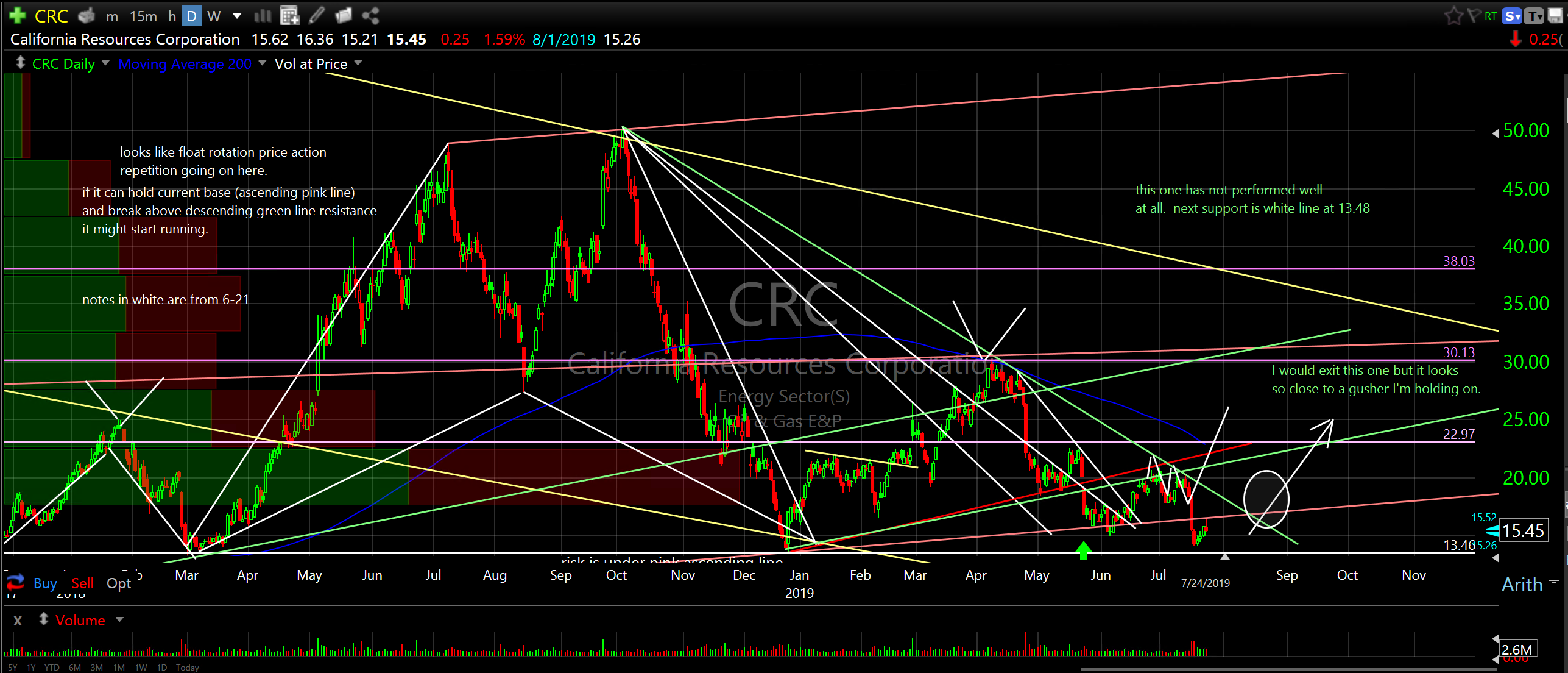 Notes and annotations on chart. Remember, many of the notes are dated. Current notes are in green.