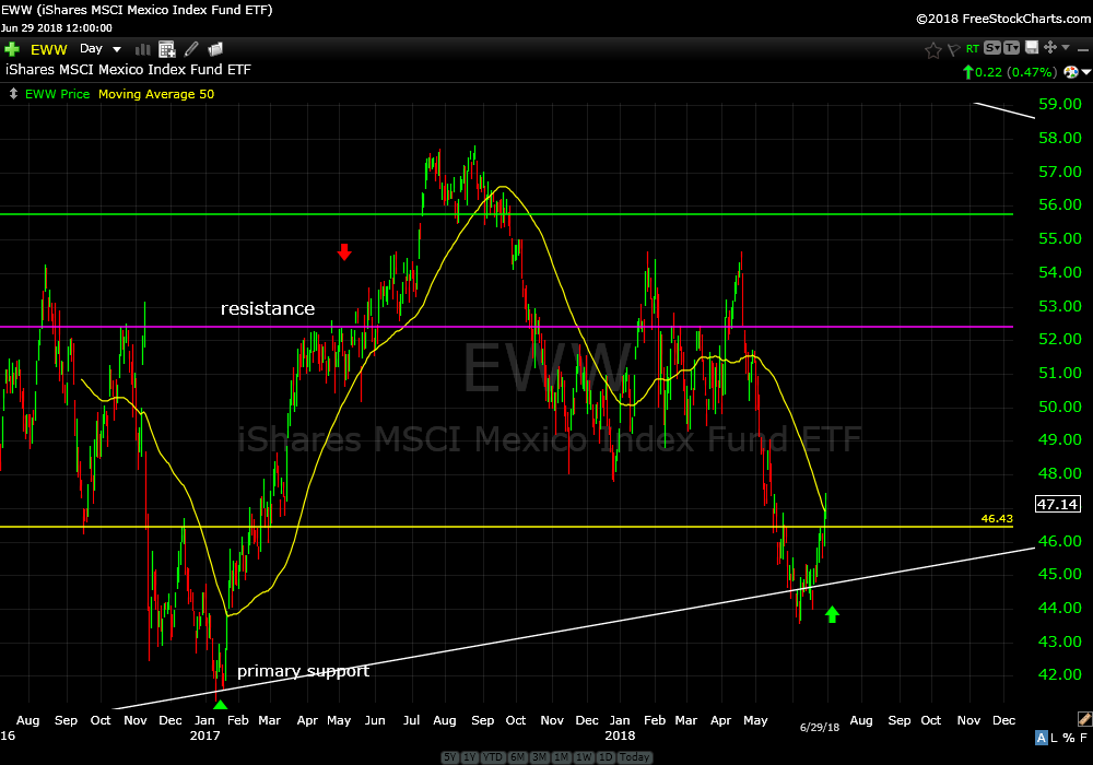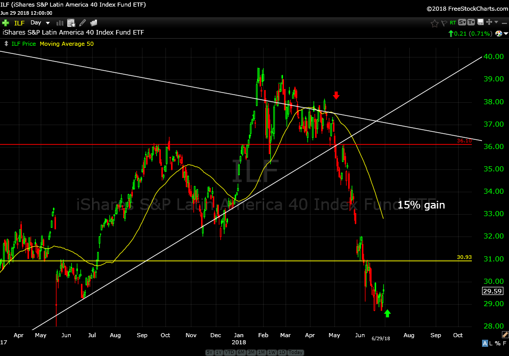 Where is there demand right now I hear you ask. Think tortillas and tequila. Yes, Mexico. Redeploy those international dollars and buy some EWW. Price has reverted down into a long term mean where there is rising demand. This correlates well with taking profits on the Latin America short sell.