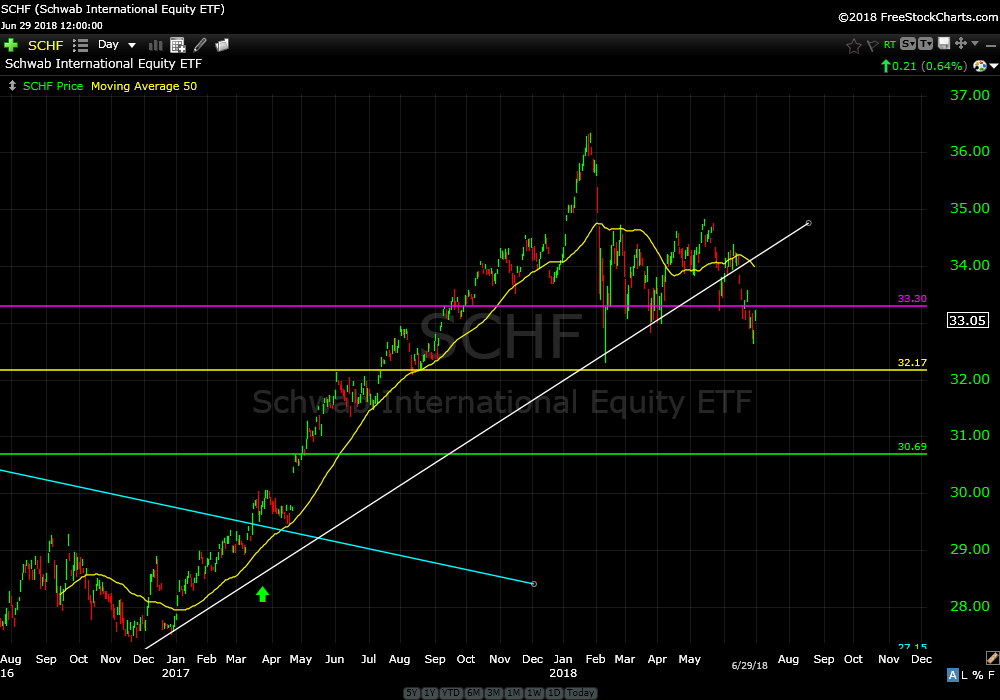 I think it’s time to lock in profits and be a little defensive. Price closed Friday at 33.05. I recommended this on March 19, 2017 at 29.8 ( 11% gain ). The risk is price goes to 30.00 before it goes back above 34.00…and…if 30.00 doesn’t hold there is much more demand around 27.00.