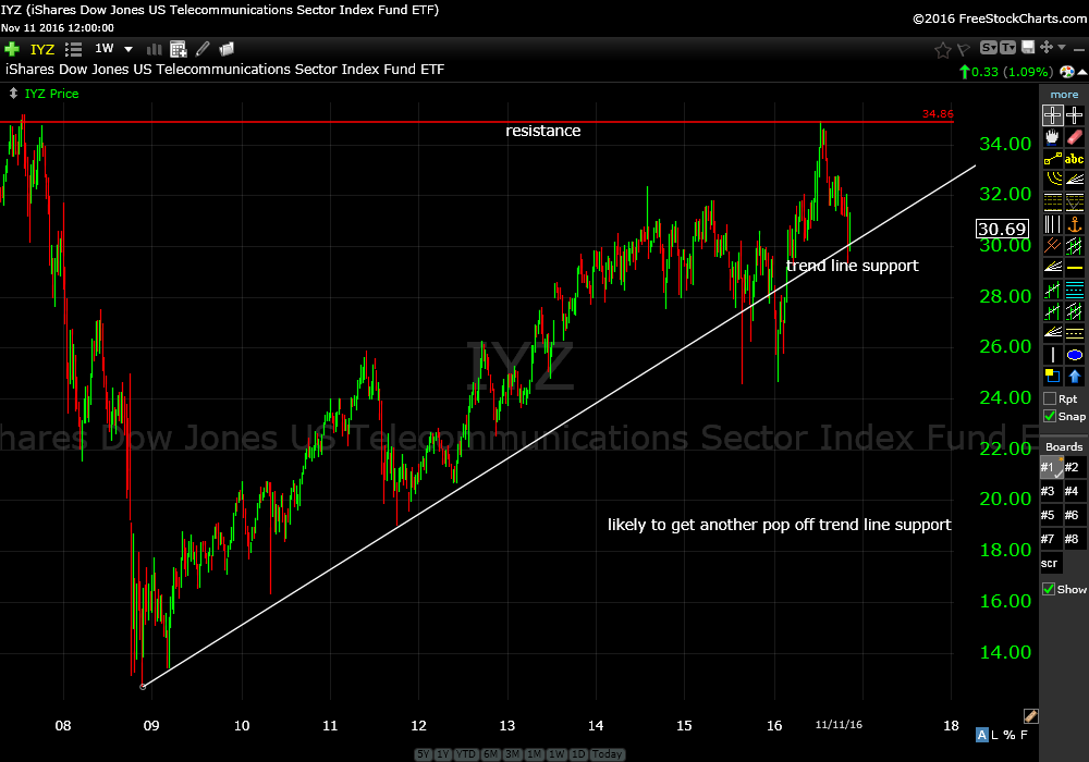 Dow Telecommunications Sector Index ETF (IYZ) weekly