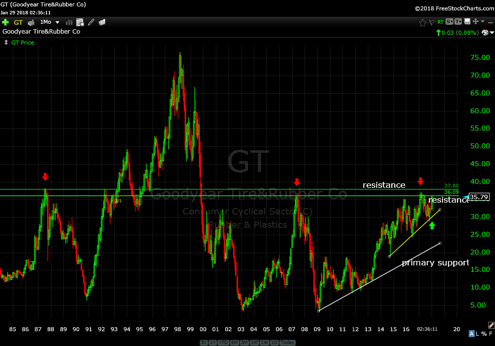 I recommended Goodyear Tire&Rubber Co (GT) on November 20 of last year. Price is currently up about 12% since. See daily chart for price action subsequent to my recommendation (green arrow).