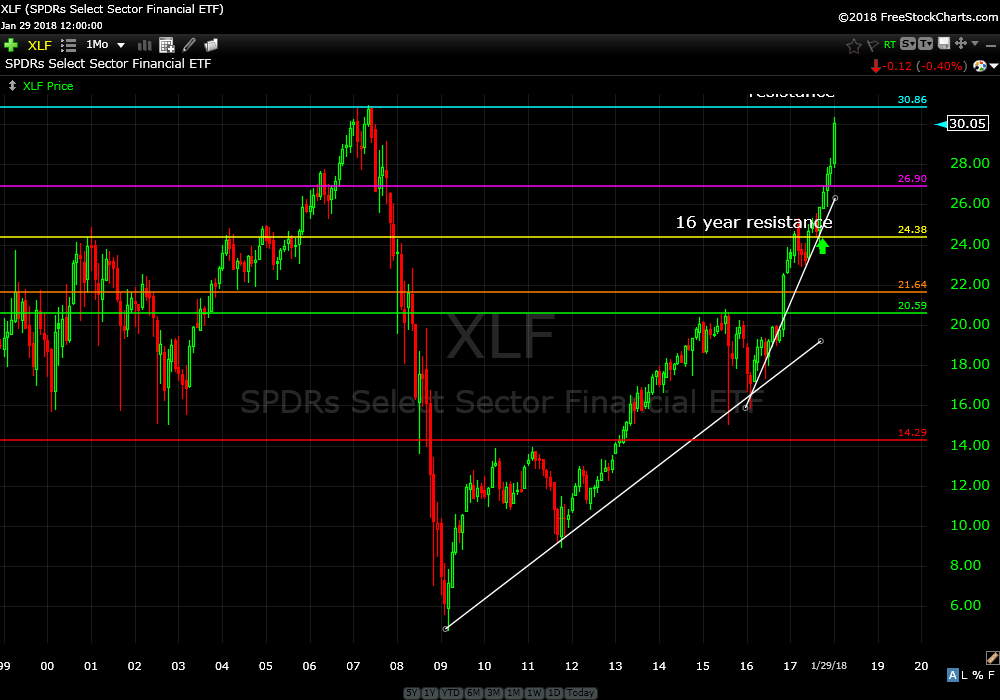 SPDR’s Select Sector Financial ETF (XLF) monthly