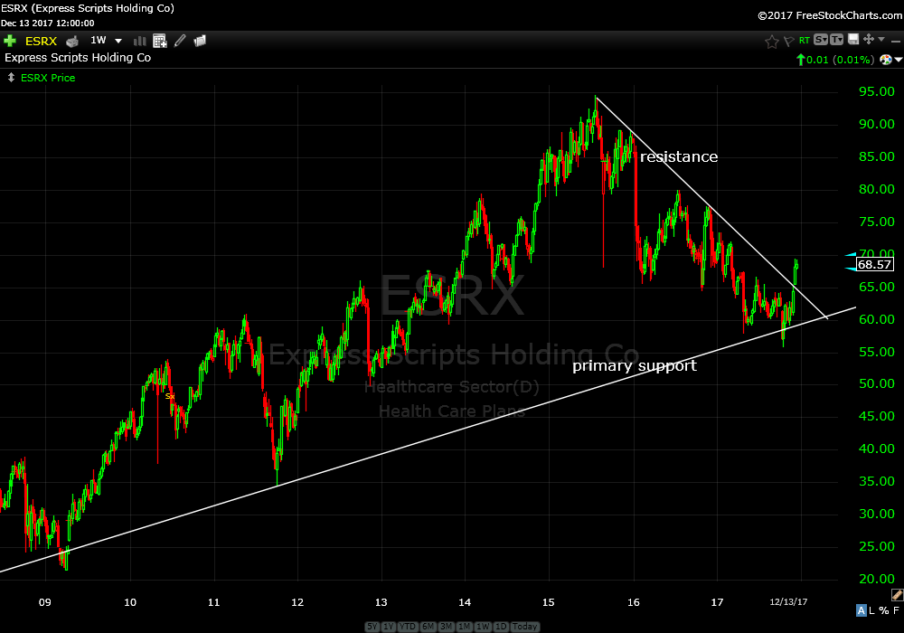 Risk is closing below primary support. I’m recommending ESRX and will be buying some Thursday morning.
