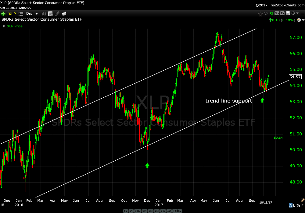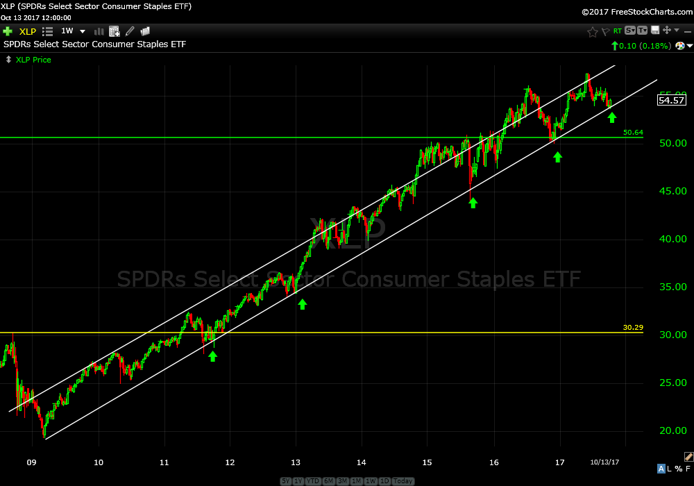 SPDRs Select Sector Consumer Staples ETF (XLP) weekly