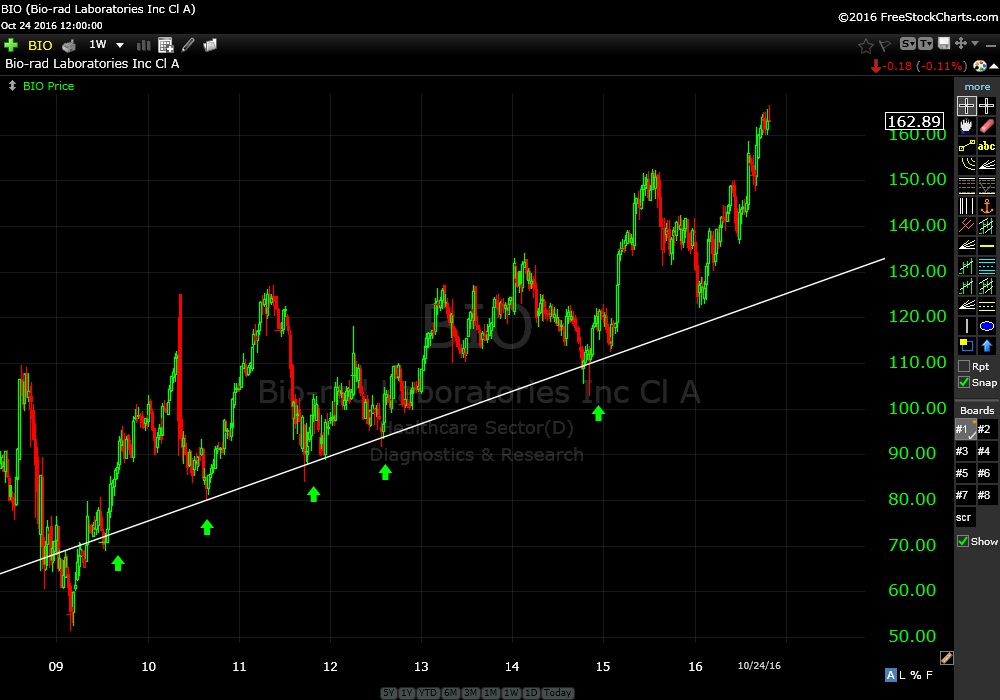 This was a very similar set up and you can see what happened when the trend line was tagged after trading sideways for nearly a year (see highlighted area above).