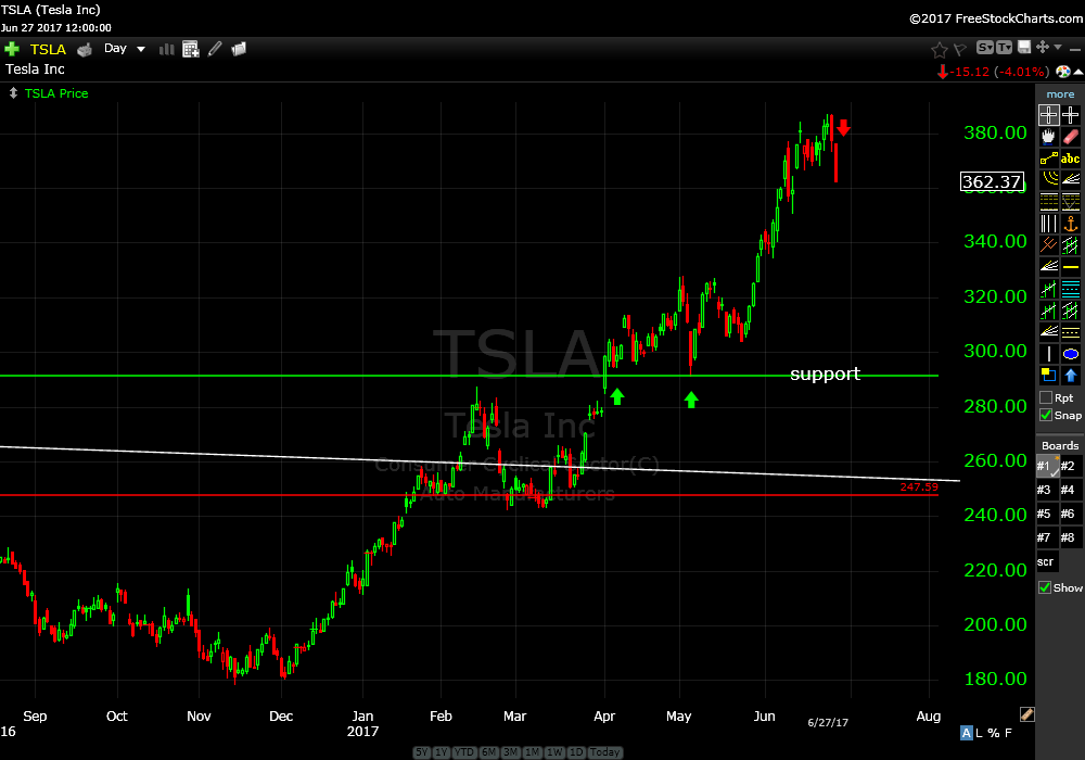 I recommended TSLA in April and again in May. Profit taking is underway and price is fading a bit.