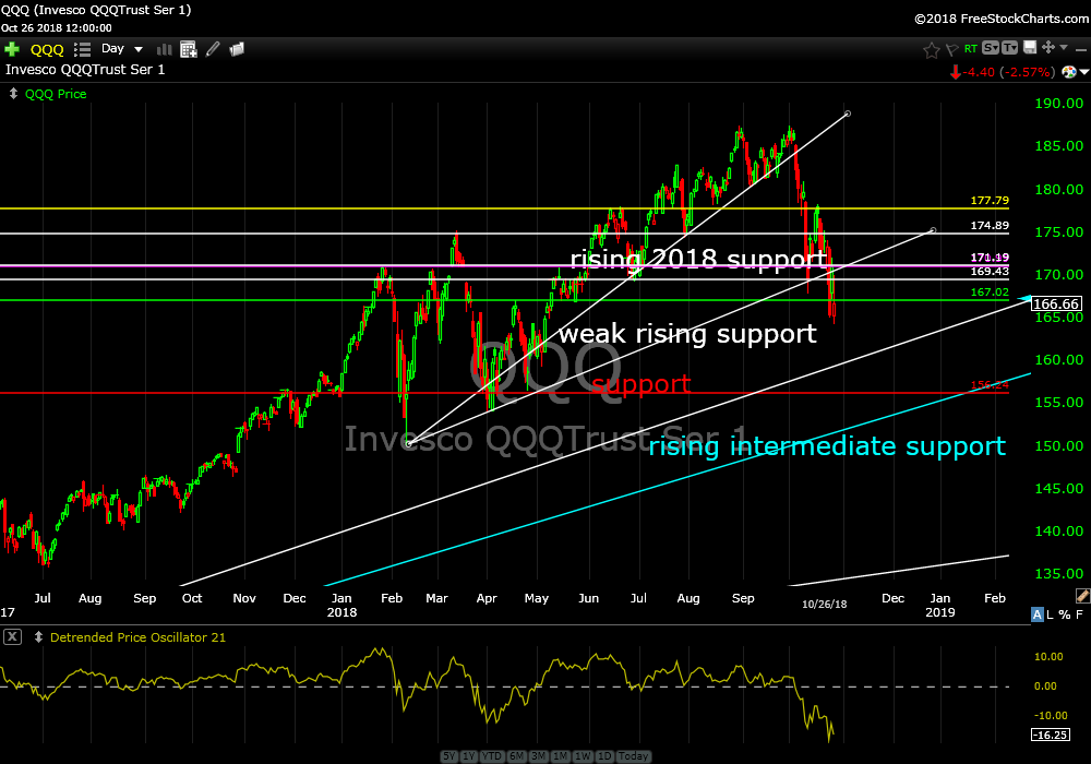 The only good news that I see is that the consumer discretionary sector ETF (XLK) which has been a leader in taking the broader market higher is now just on top of support. It may get a bid up here soon but I don’t think it will be enough to stem the bleeding.