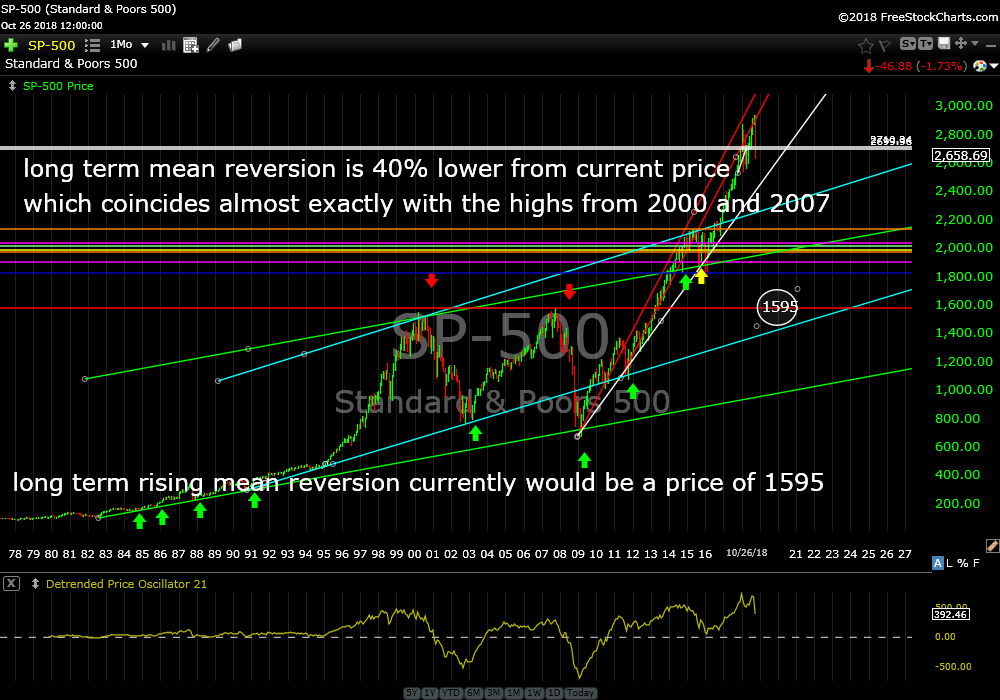 This S&P 500 index cash chart (SPX) is a monthly chart from 1978 which shows long term support. 1595 is right smack dab in the middle of the glide slope from the bottom in 1982. After you study this chart wait 5 minutes before resuming normal activity.