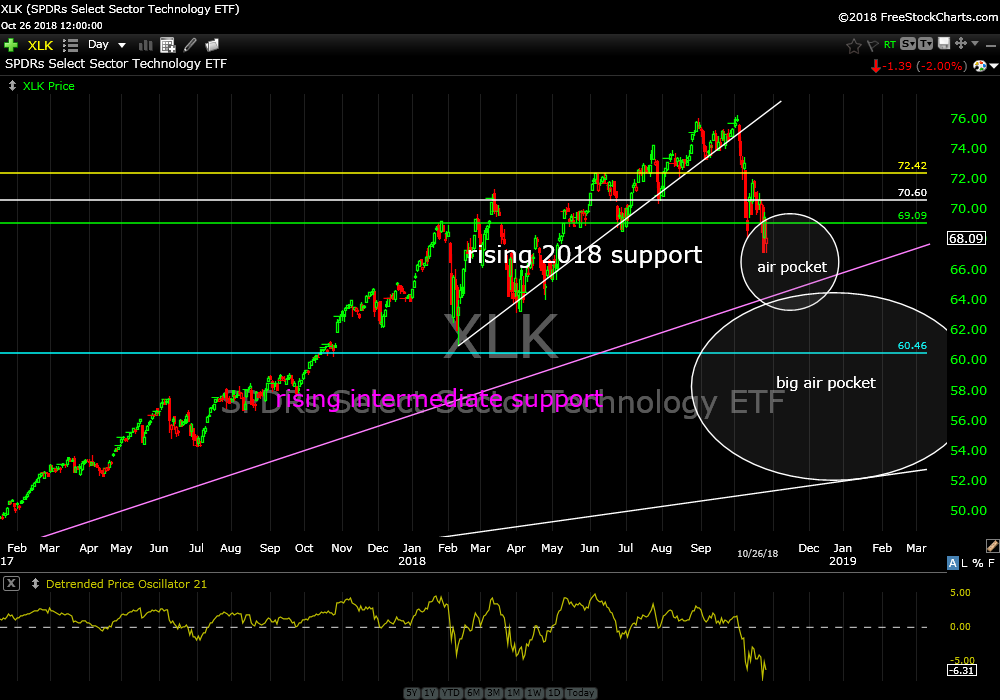 In worse news, I don’t even want to think about XLK breaking rising intermediate support. There is an air pocket underneath about the size of the Grand Canyon. See daily chart above.