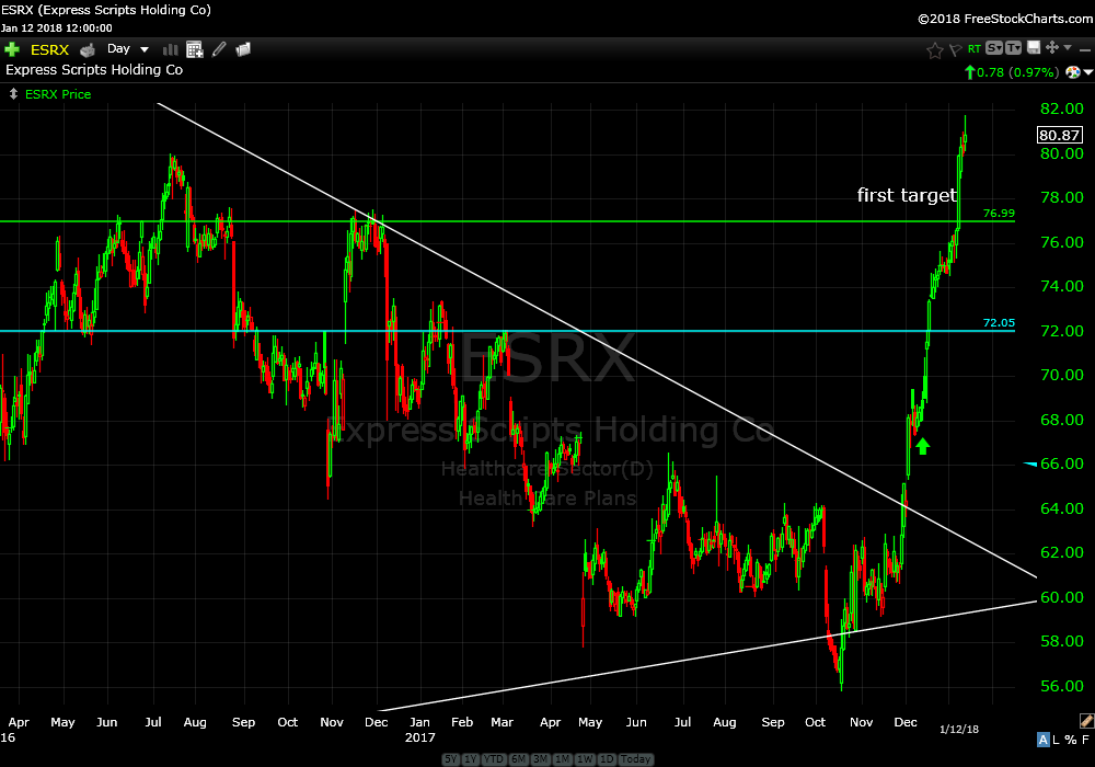 I recommended Express Scripts Holding Co (ESRX) on December 14th, one month ago.