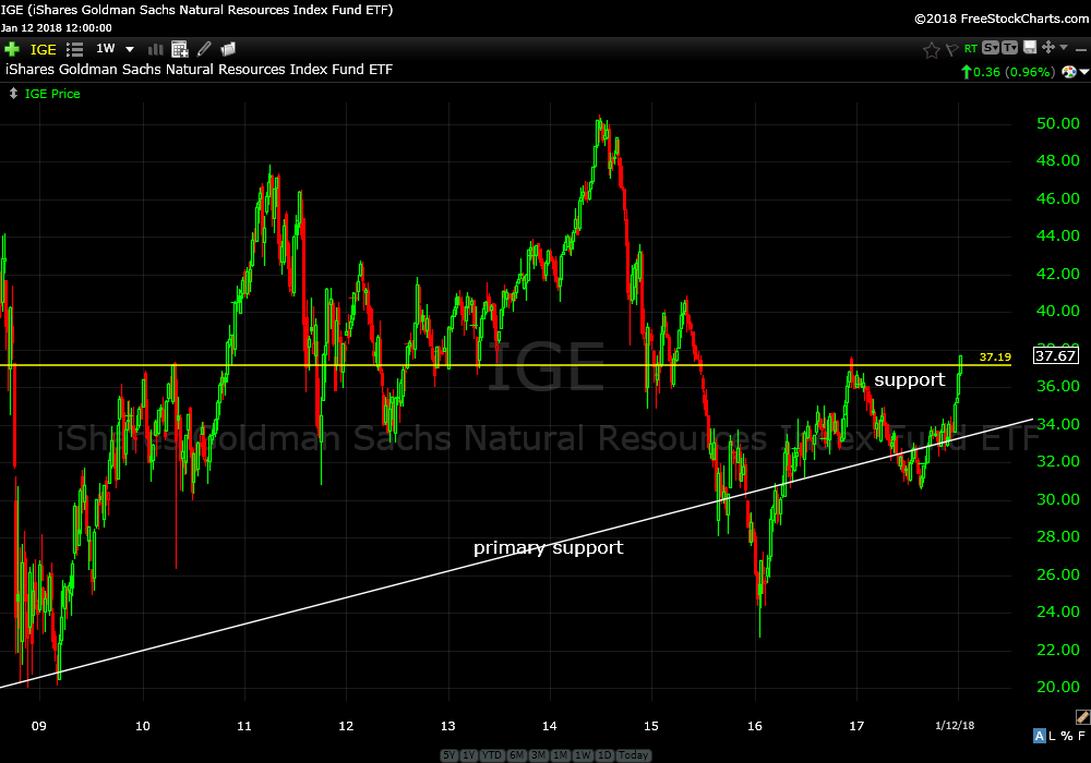 iShares Goldman Sachs Natural Resources Index Fund ETF (IGE) weekly