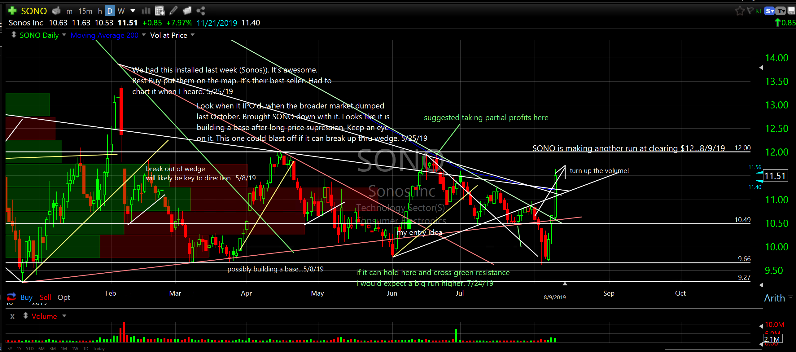 Look at Sonos Inc (SONO) rip off its base. It sure wants to run in my opinion after crossing multiple resistance on Friday.